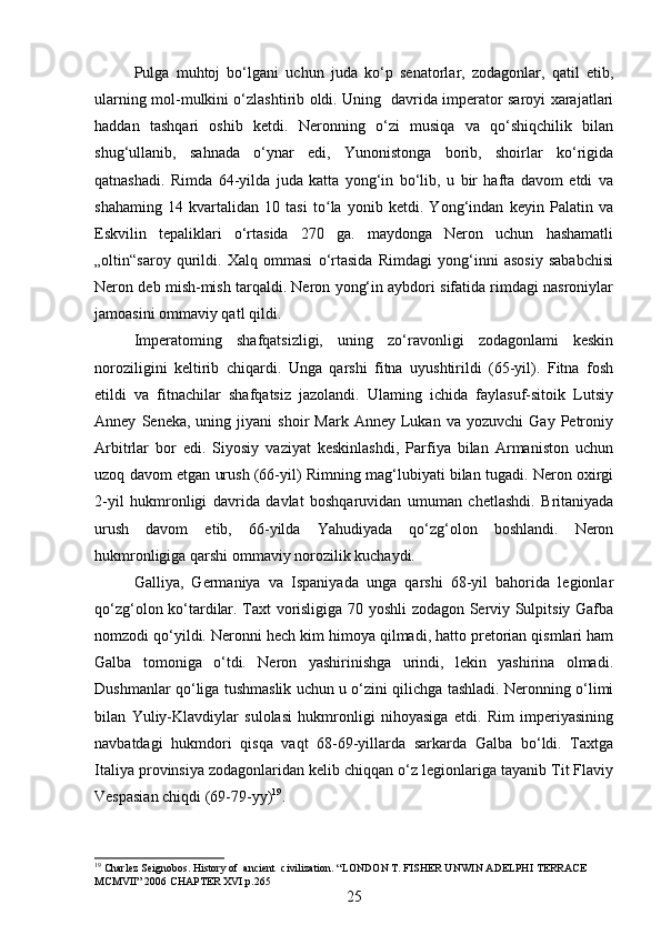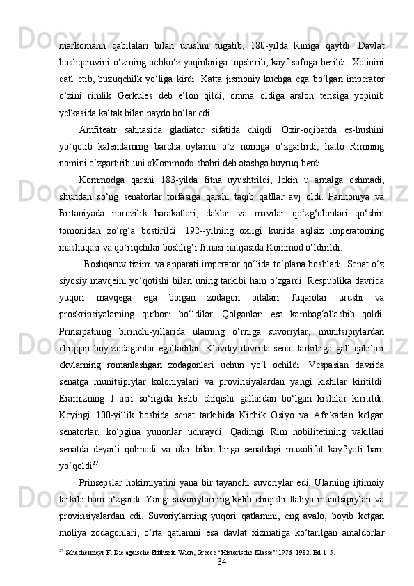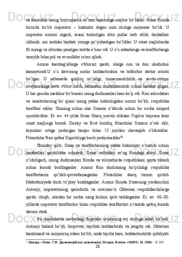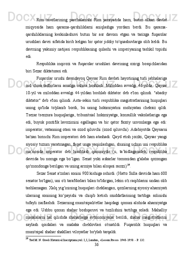 2.2. Rim respublikasining inqirozi va qulashi………………………….. 35