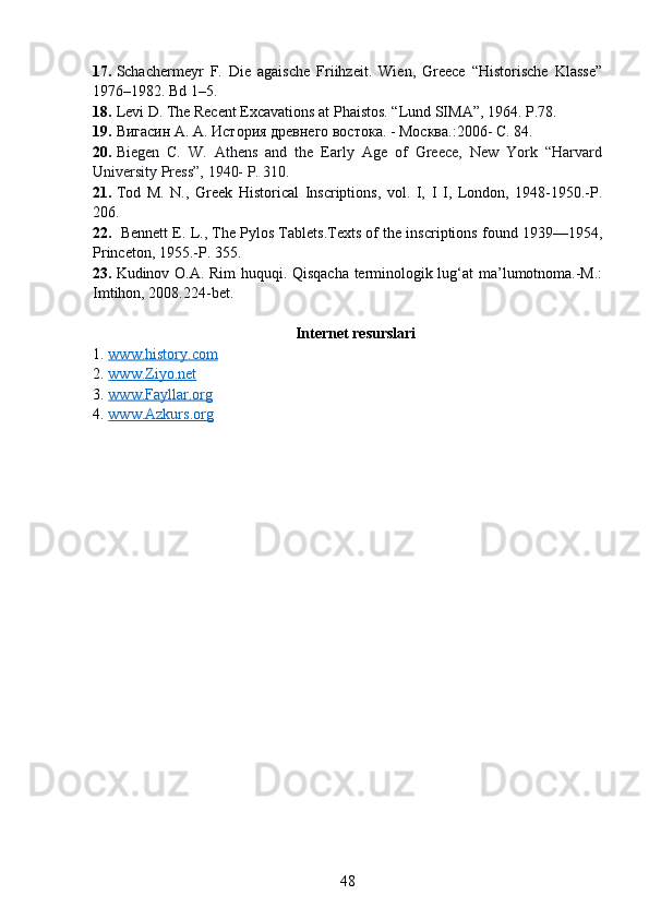 IV.FOYDALANILGAN ADABIYOTLAR RO'YXATI……….............. 47
