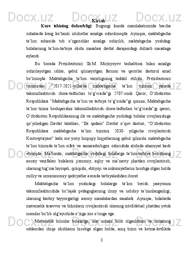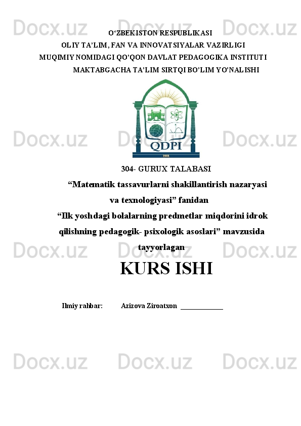 Ilk yoshdagi bolalarning predmetlar miqdorini idrok qilishning pedagogik- psixologik asoslari