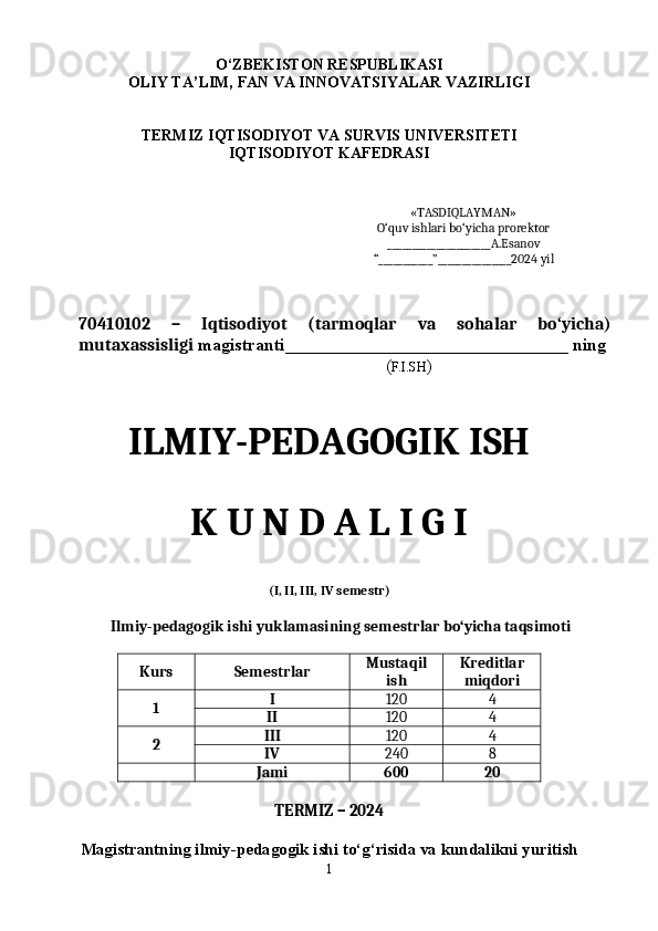 Ilmiy-pedagogik ishi yuklamasining semestrlar bo‘yicha taqsimoti