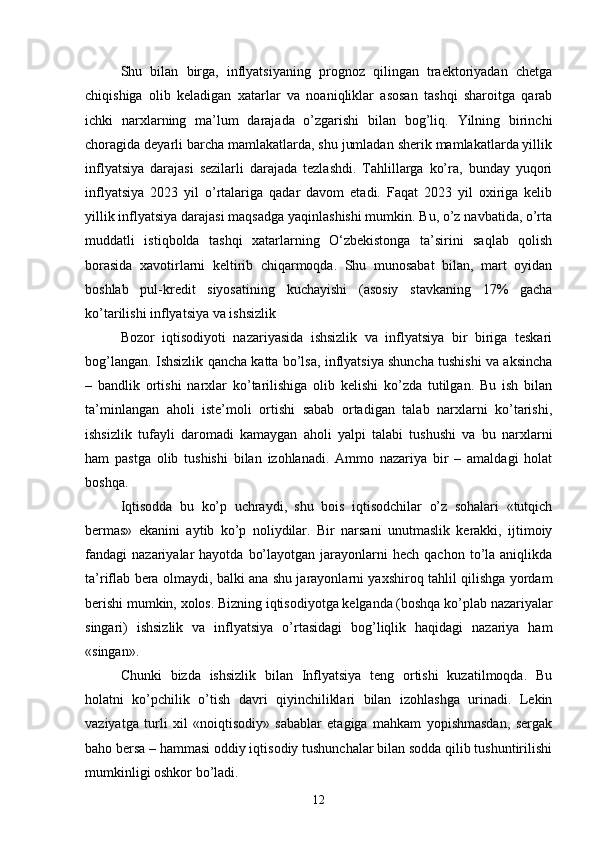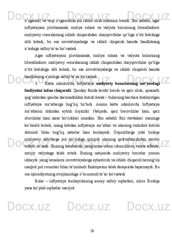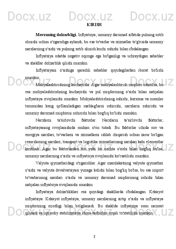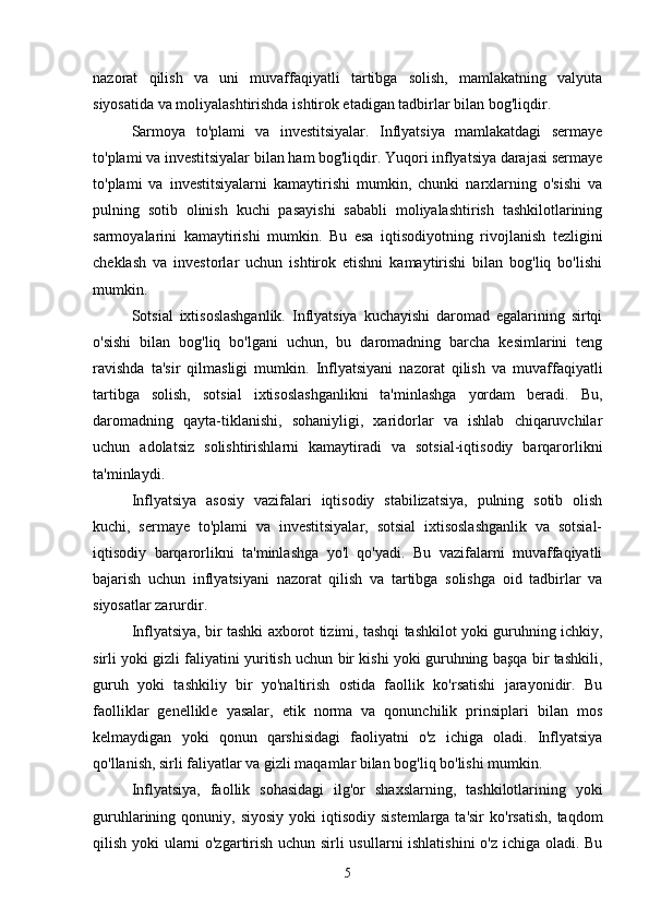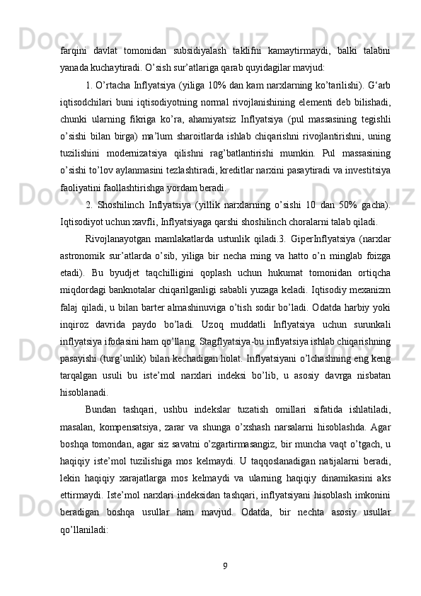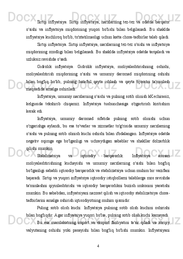 Inflyatsiya tushunchasi, sabablari va shakllari