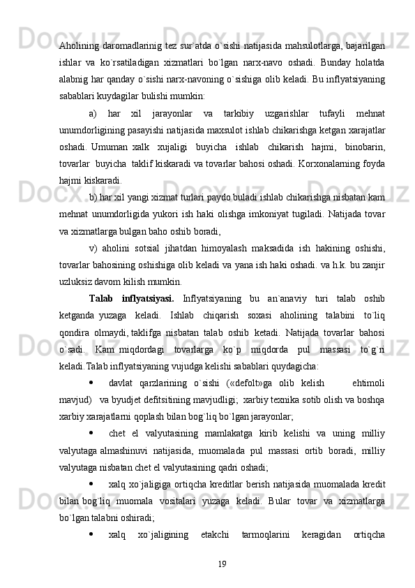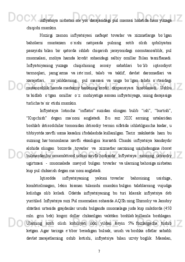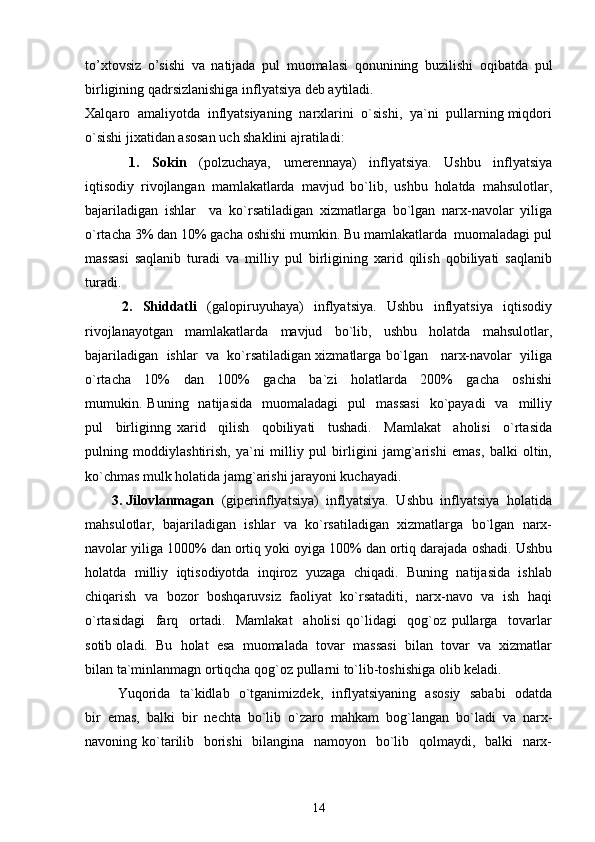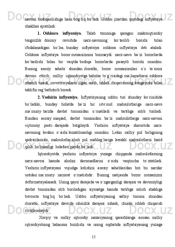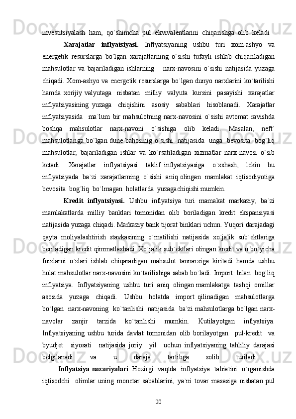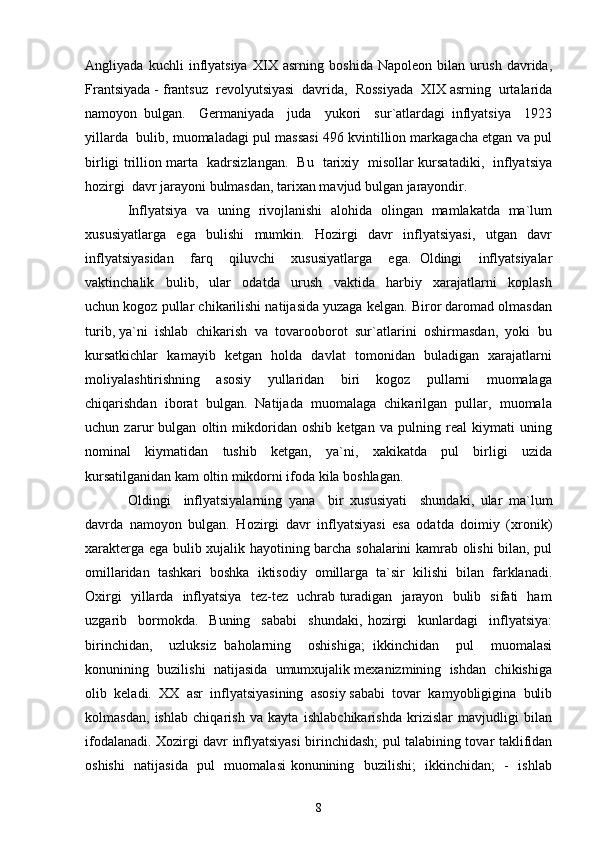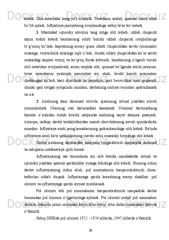 Inflyatsiya, uning iqtisodiy va ijtimoiy oqibatlari