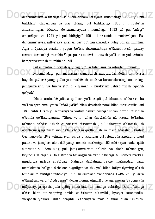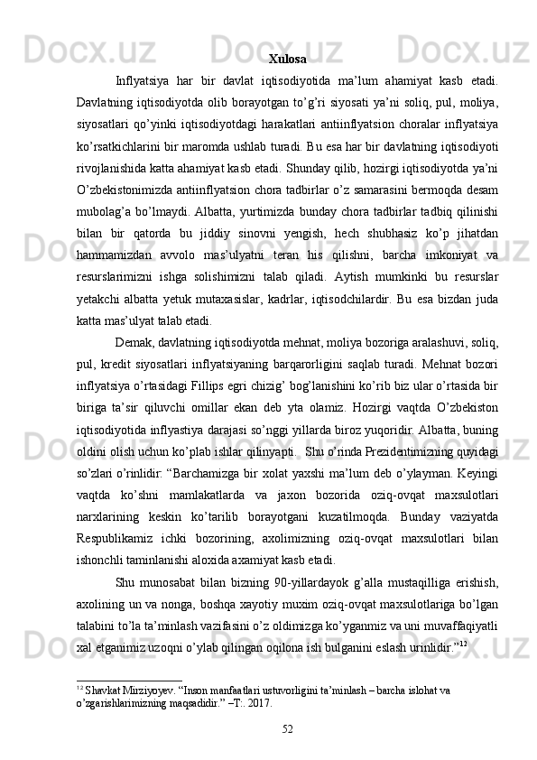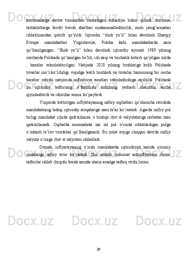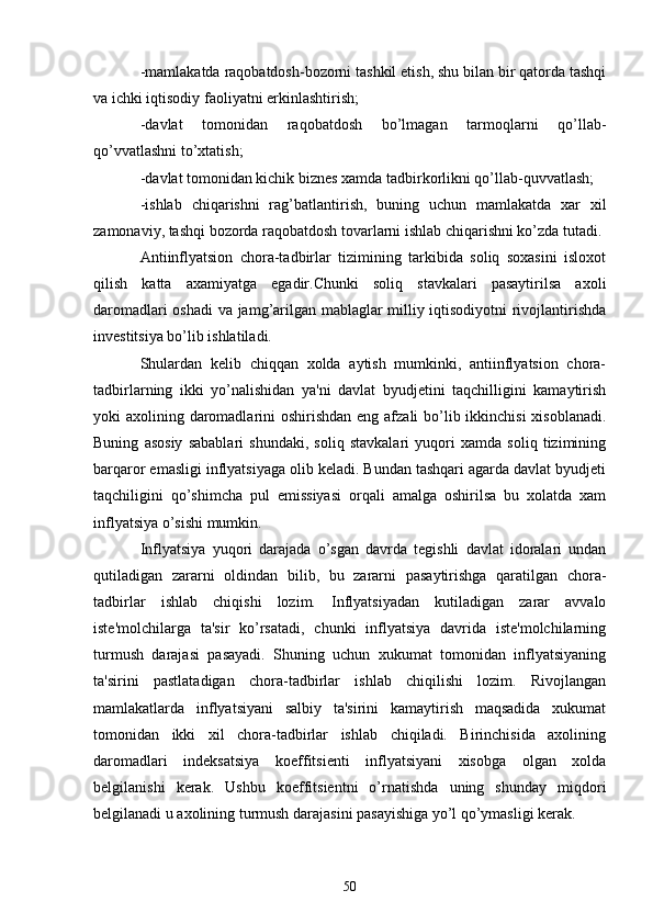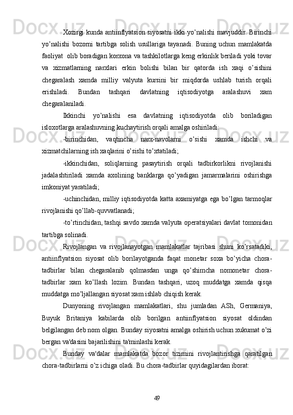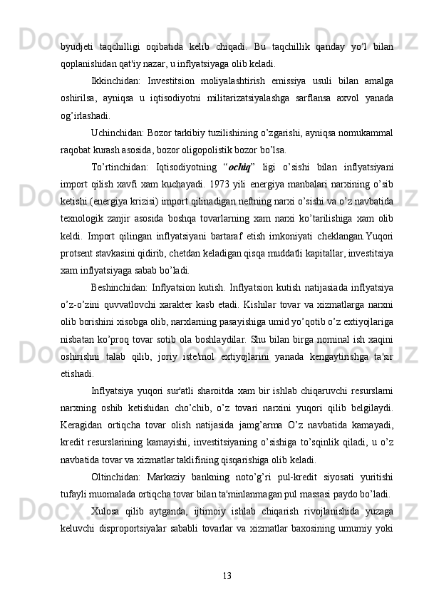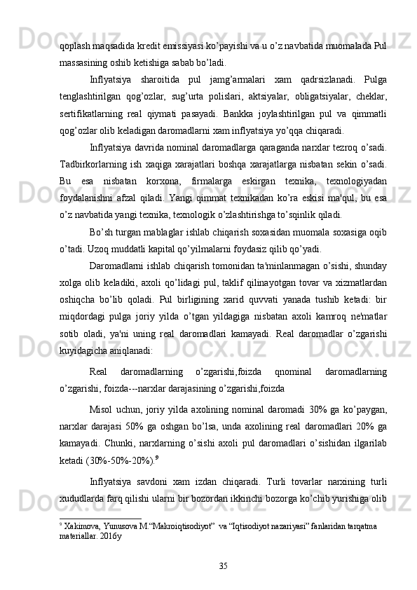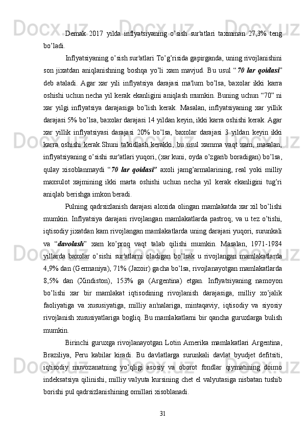 Inflyatsiya, uning iqtisodiy va ijtimoiy oqibatlari