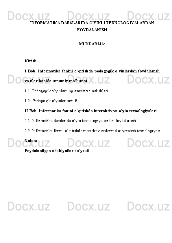Informatika darslarida o'yinli texnologiyalardanfoydalanish