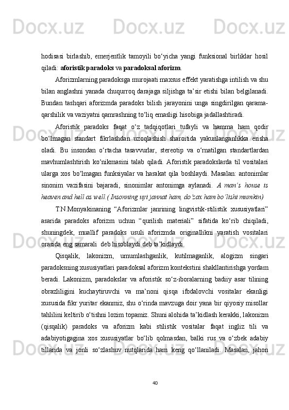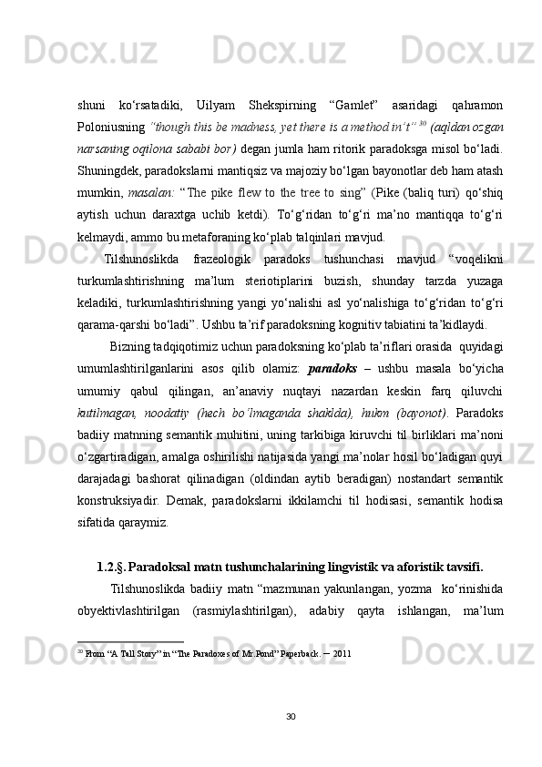 1.2.§.Paradoksal matn tushunchasininglingvistik va aforistik tavsifi..................26