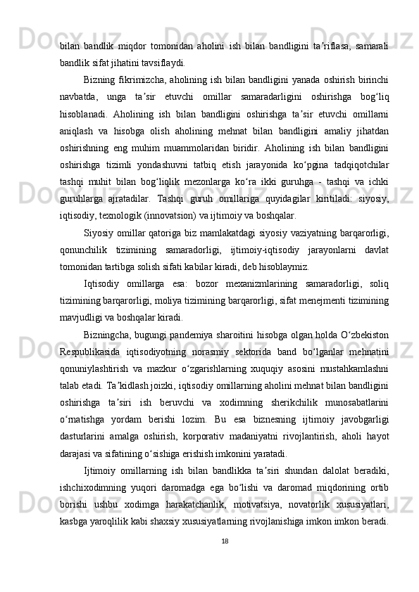 Innovatsion iqtisodiyotda ish bilan bilan bandlik samaradorligini oshirish yo’llari 87 BET