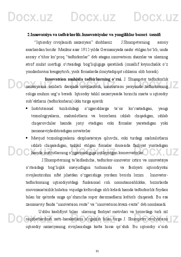 2.Innovatsiya va tadbirkorlik.Innovatsiyalar va yangiliklar bozori tasnifi 10