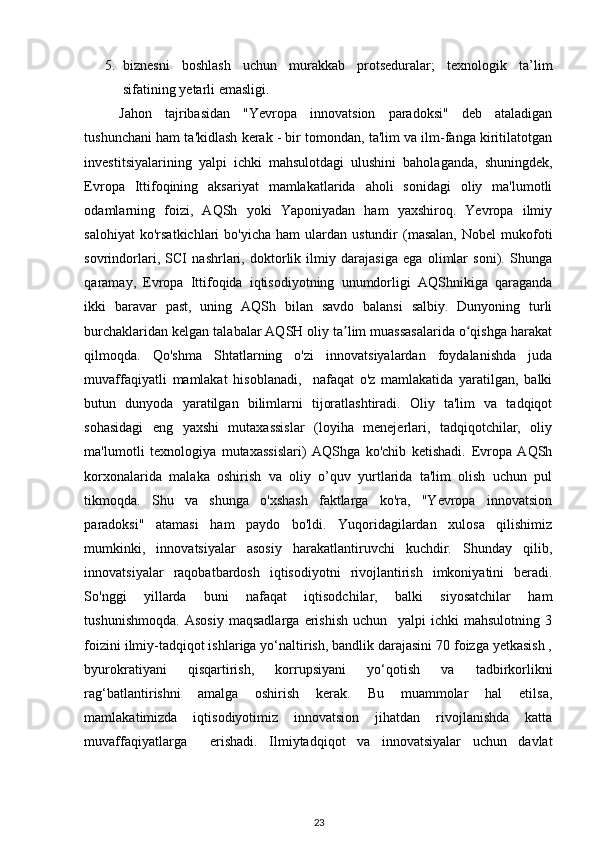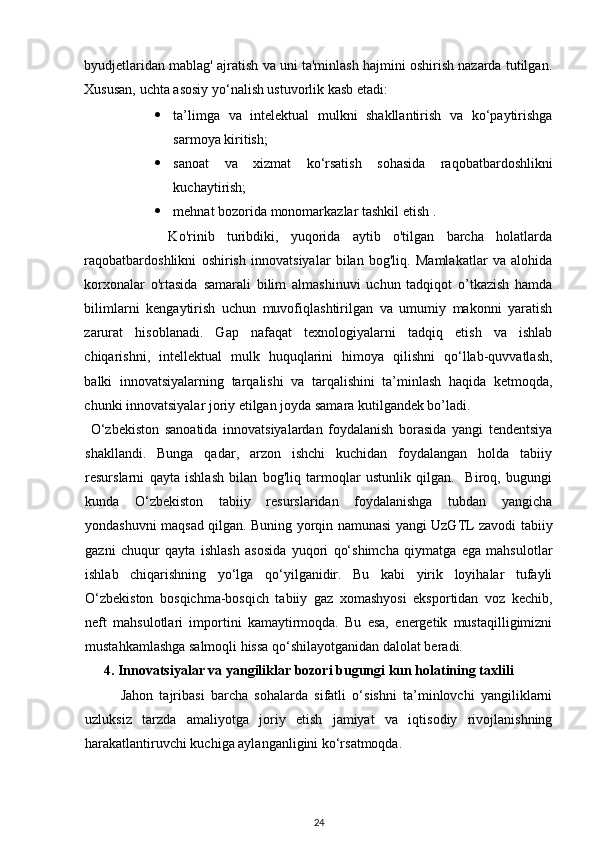 4. Innovatsiyalar va yangiliklar bozori bugungi kun holatining taxlili 23