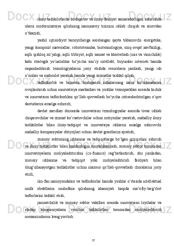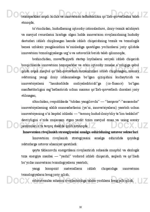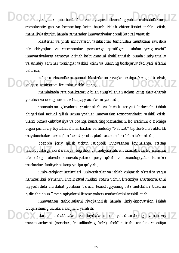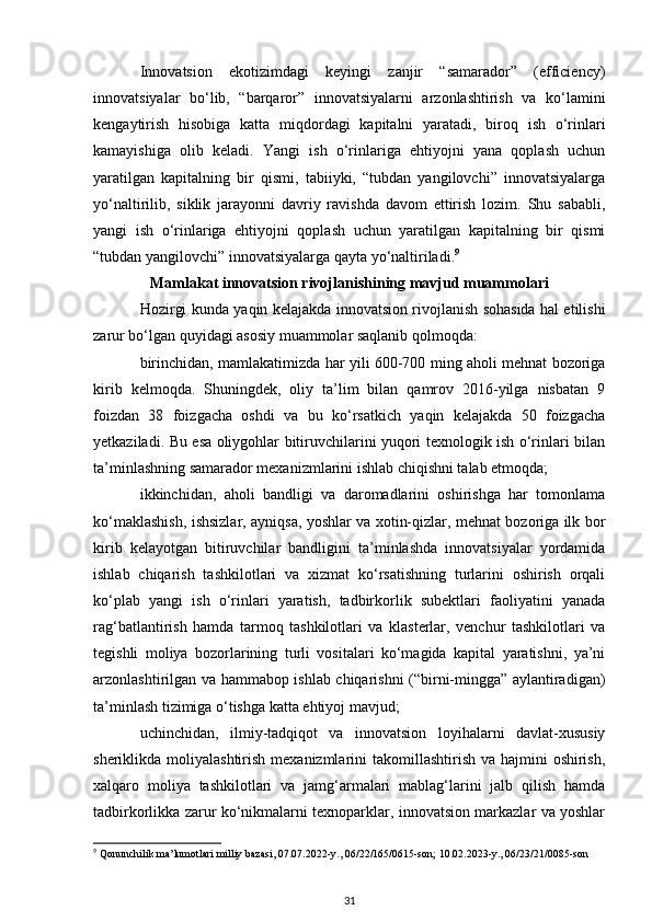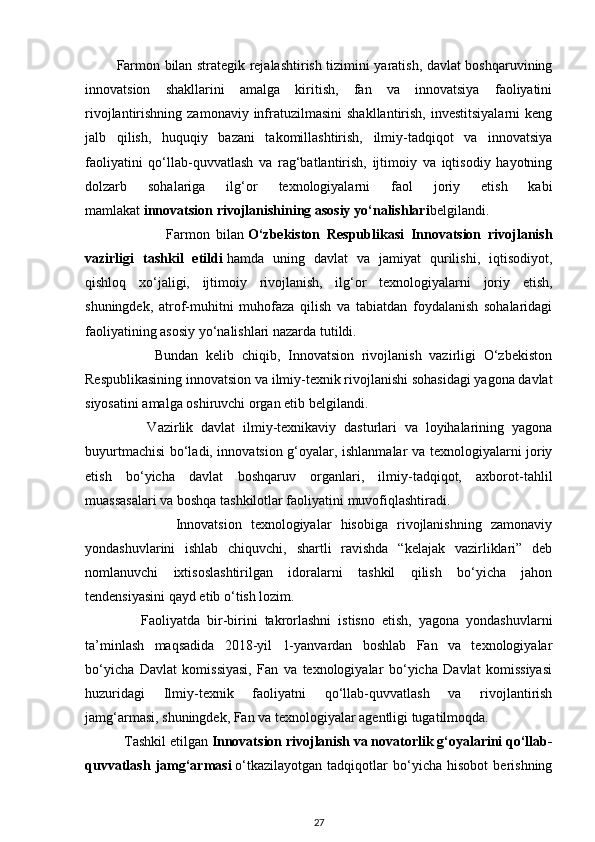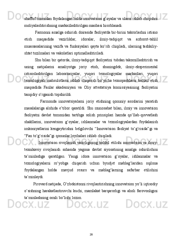 5. O’zbekistonda innovatsiyalar va yangiliklar bozorini rivojlantirish istiqbollari 27