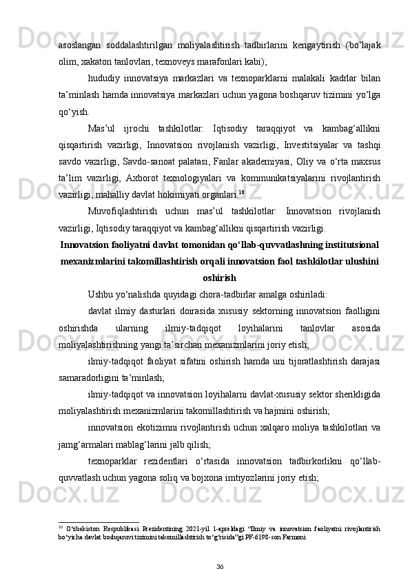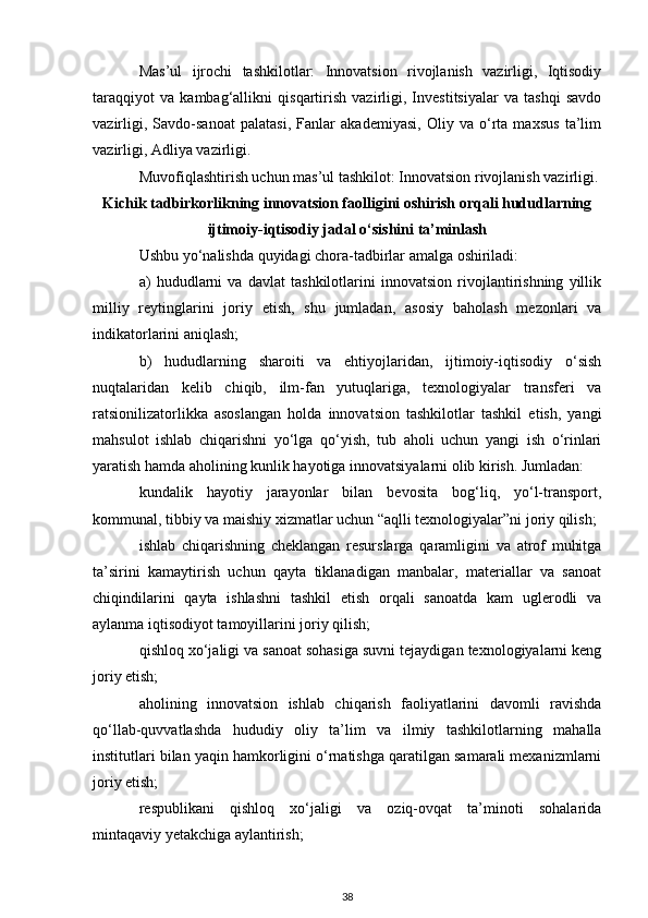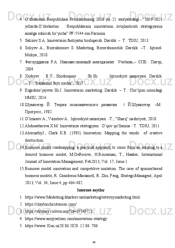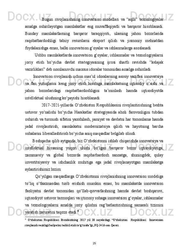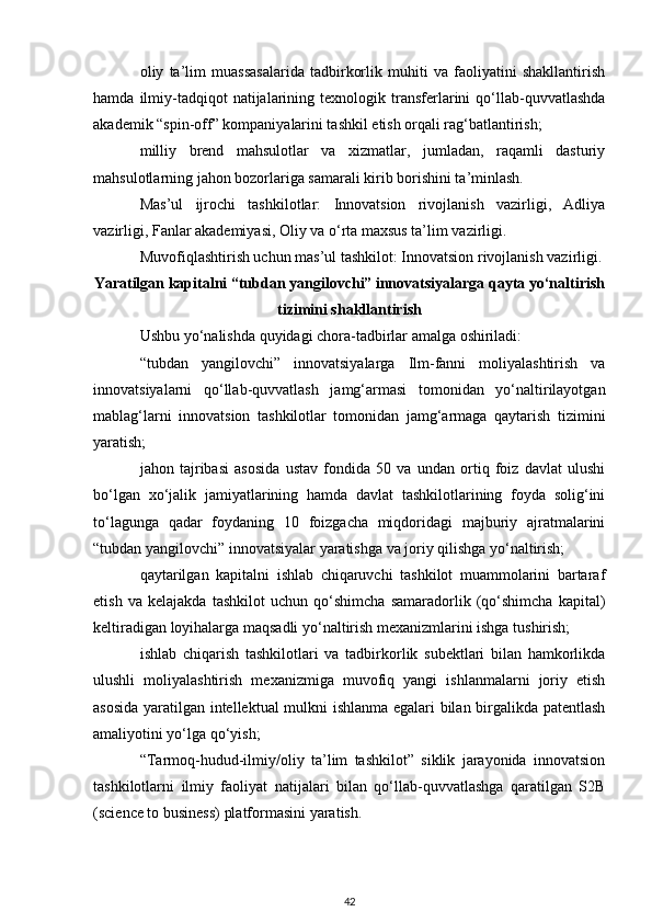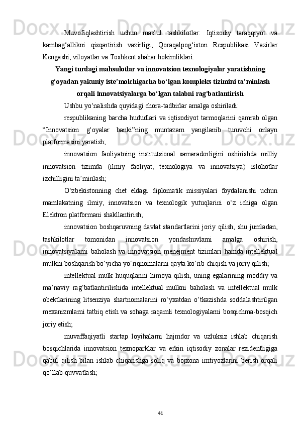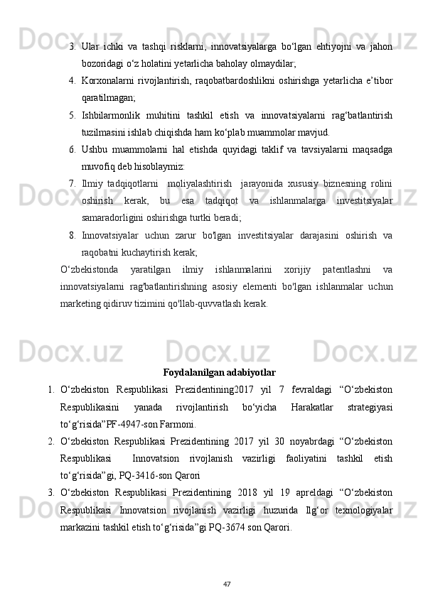 5. O’zbekistonda innovatsiyalar va yangiliklar bozorini rivojlantirish istiqbollari 27