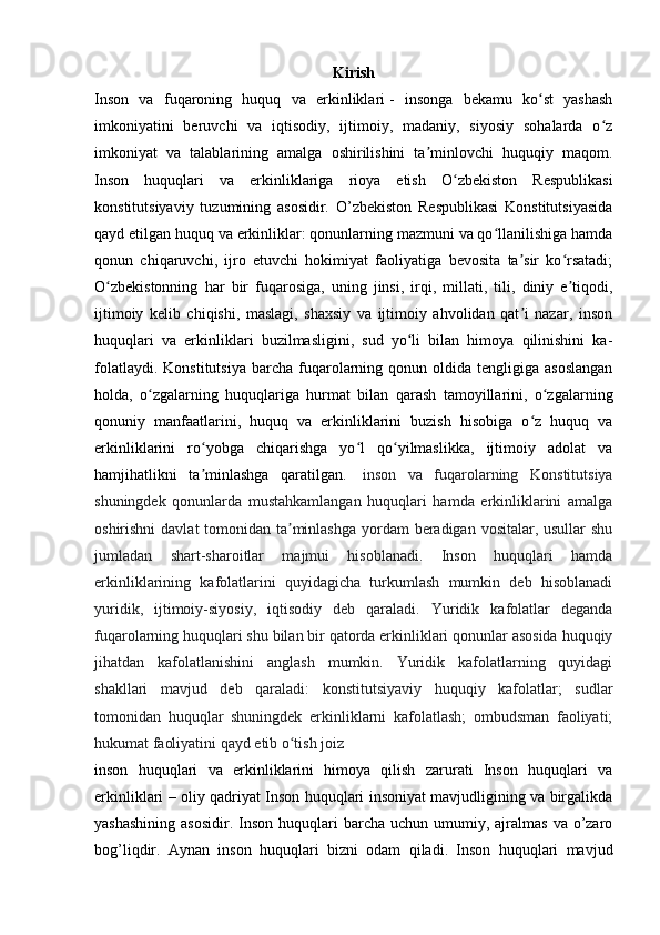 Inson hamda fuqaroning huquq va erkinliklari kafolatlari
