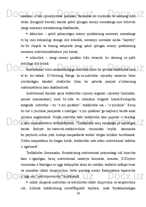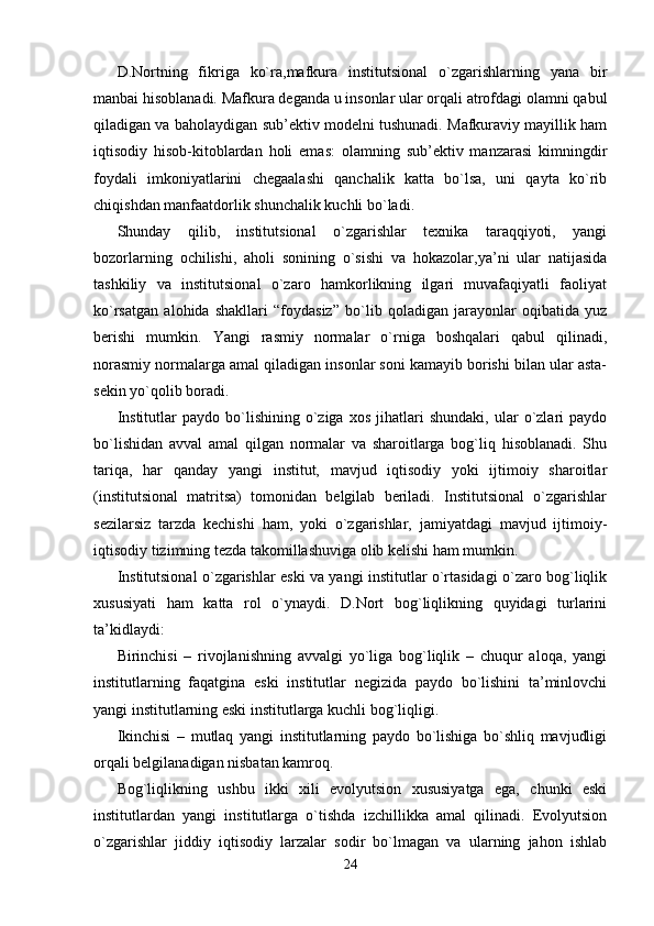 ta’sir   ko`rsatadi.   D.Nortning   fikriga   ko`ra,institutlar   iqtisodiy   nazariya   bilan