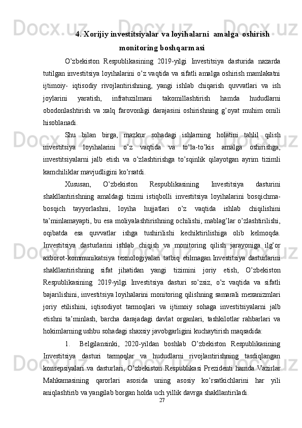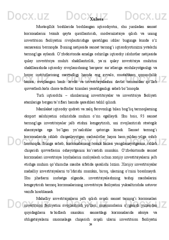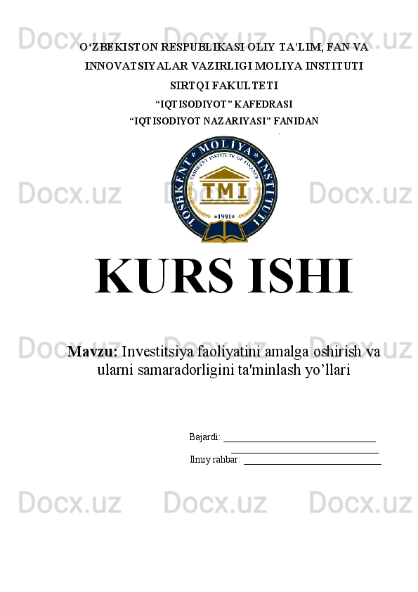 Investitsiya faoliyatini amalga oshirish va ularni samaradorligini ta'minlash yo’llari