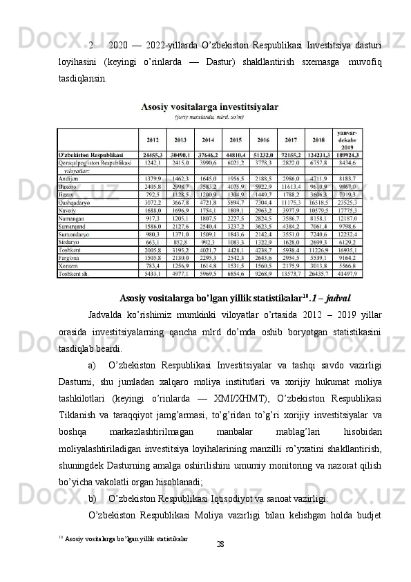 va   jadallashuvi   natijasida   iqtisodiyotimizda   umumiy   investitsion   jarayon   faolligi