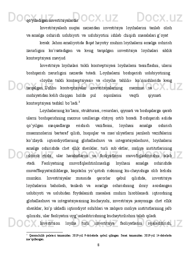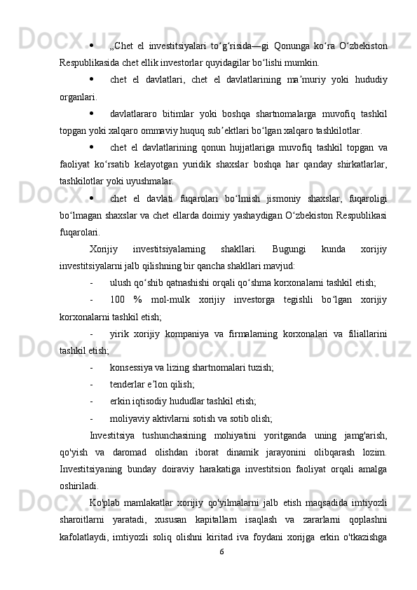 6 „Chet   el   investitsiyalari   to g risida―giʻ ʻ   Qonunga   ko ra	ʻ   O zbekiston	ʻ