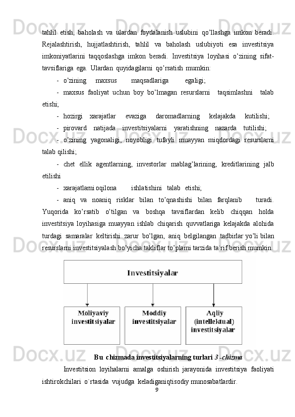 joylashtirish   mexanizmlarini   maqbullashtirish,   investitsiya   loyihalarini