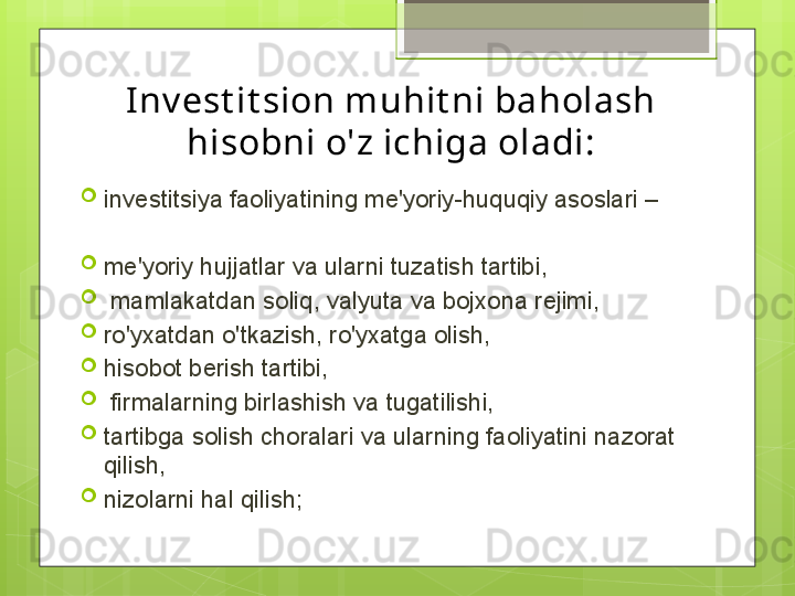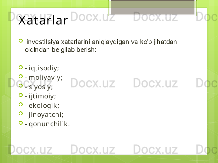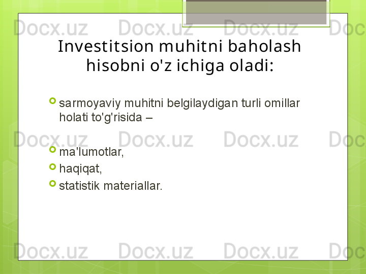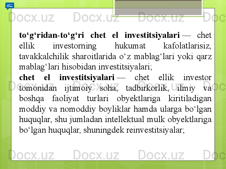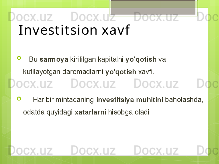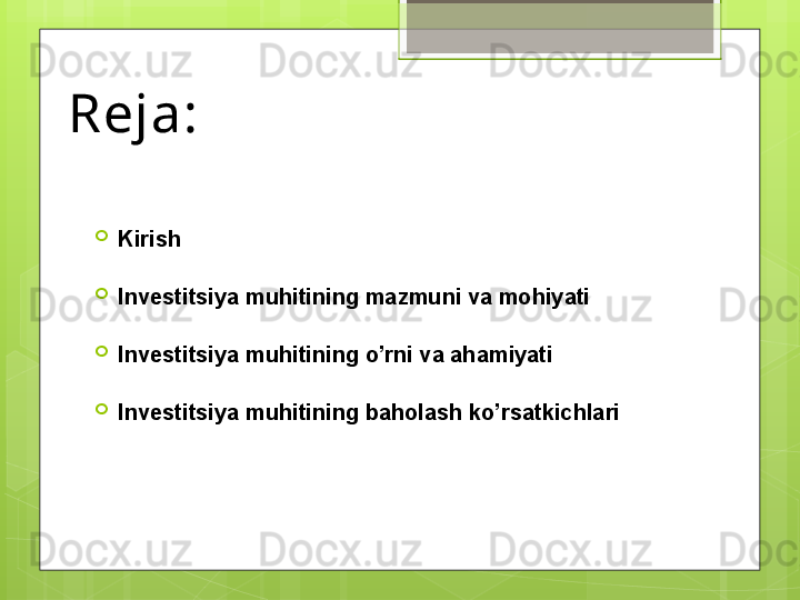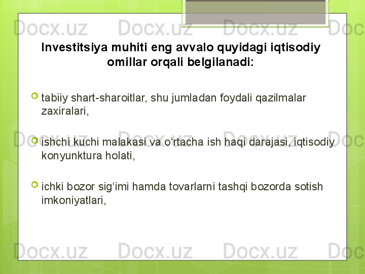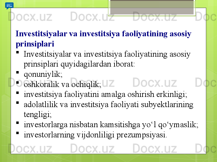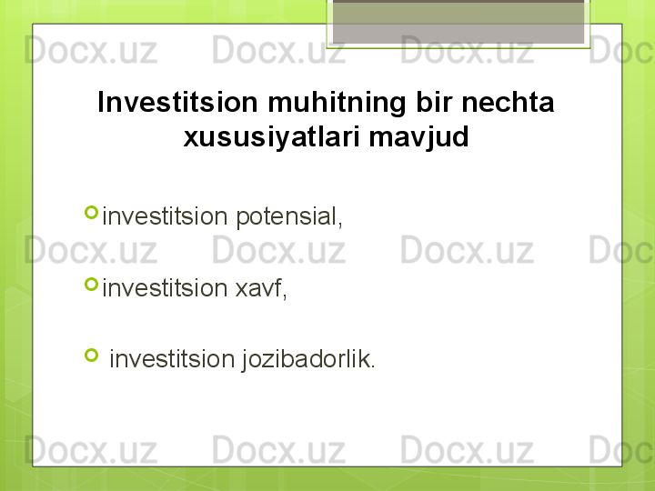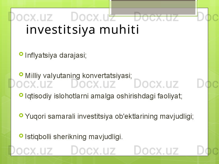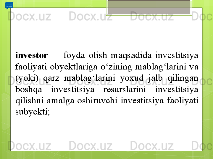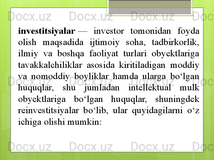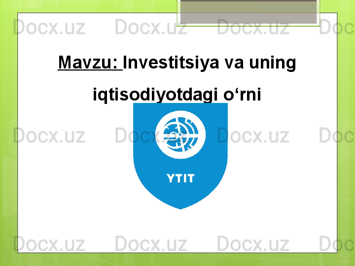 Investitsiya va uning iqtisodiyotdagi o'rni