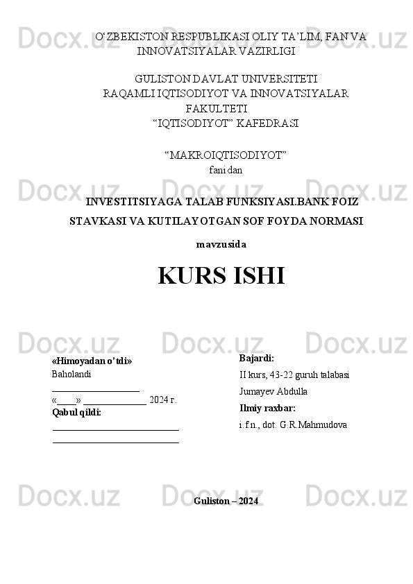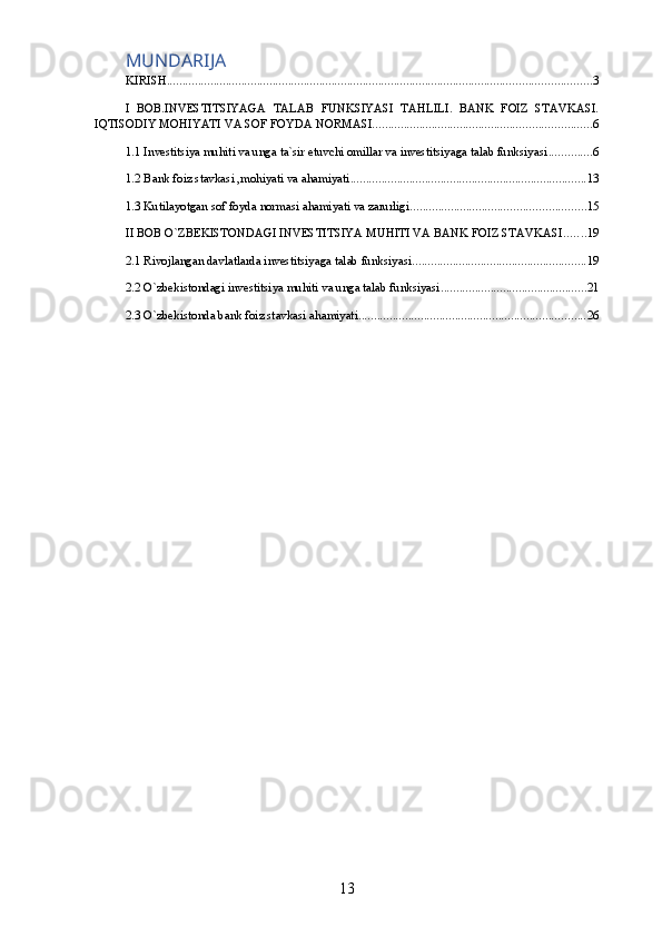 Investitsiyaga talab funksiyasi. Bank foiz stavkasi va kutilayotgan sof foyda normasi