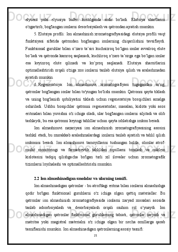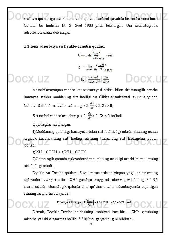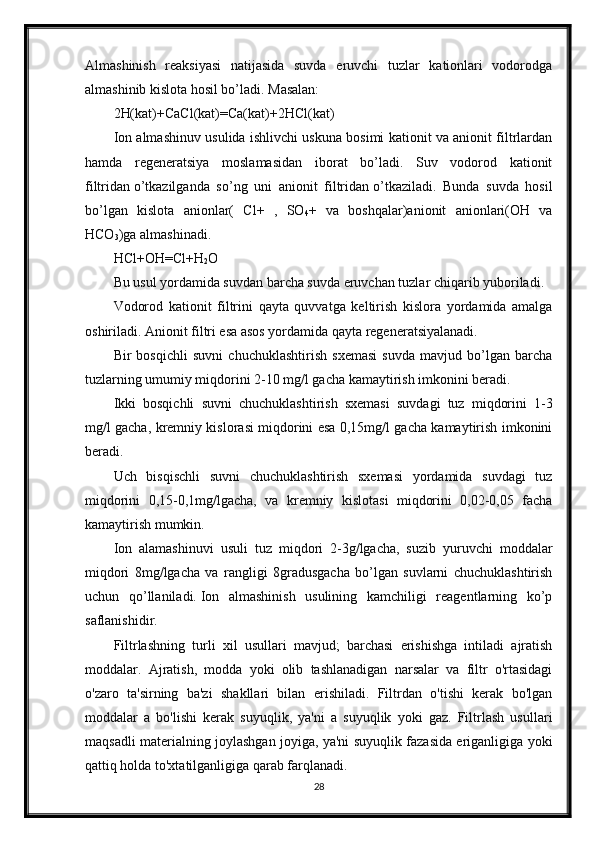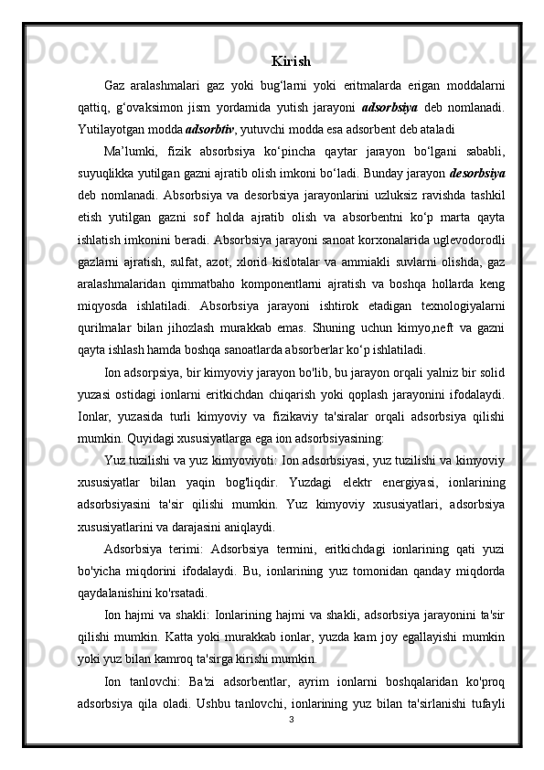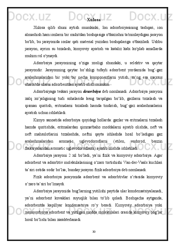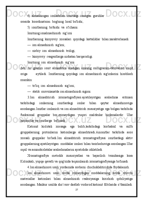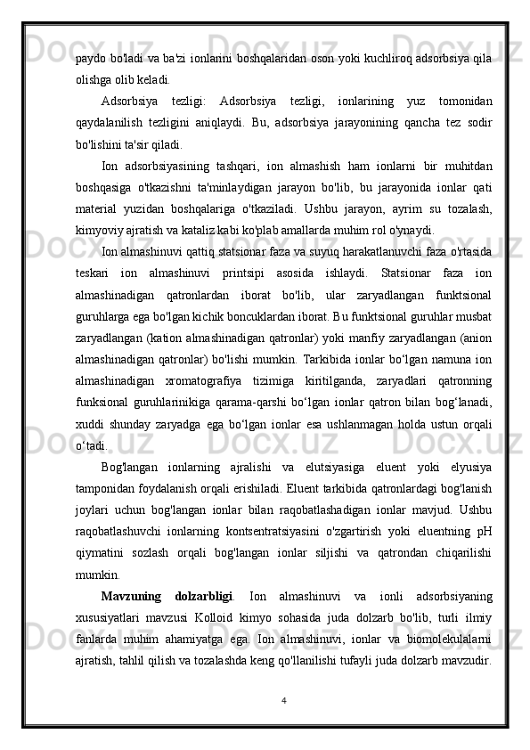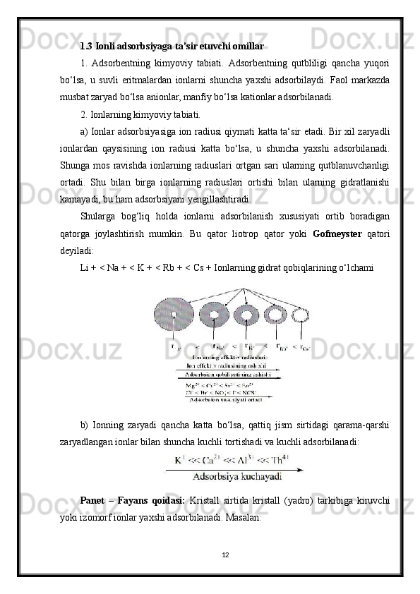 Ionli adsorbsiyaning xususiyatlari. Ion almashinuvi