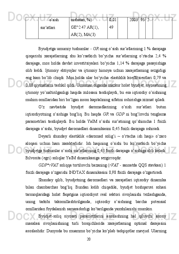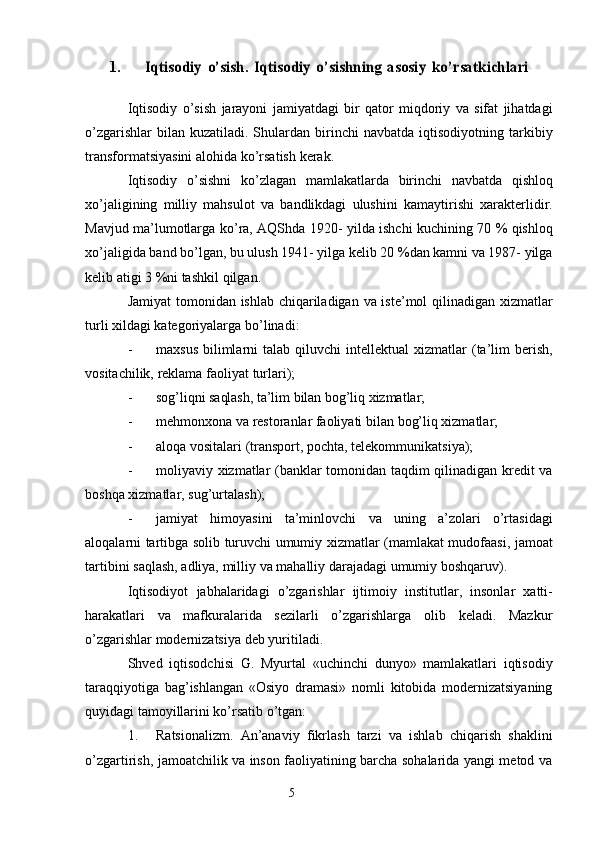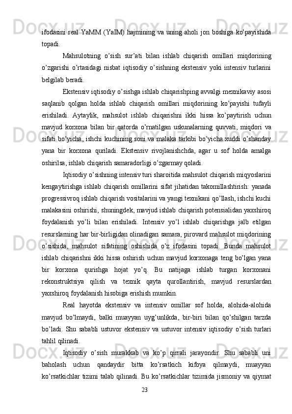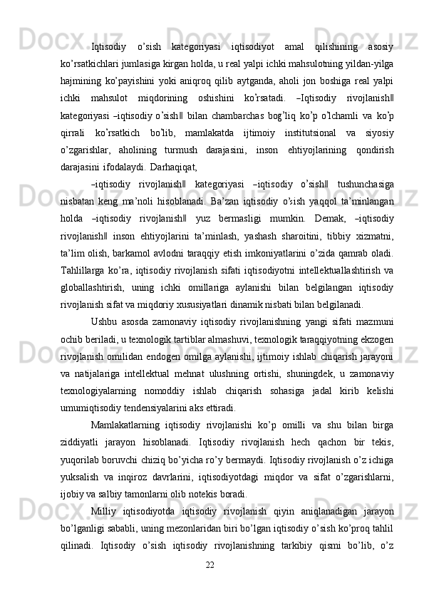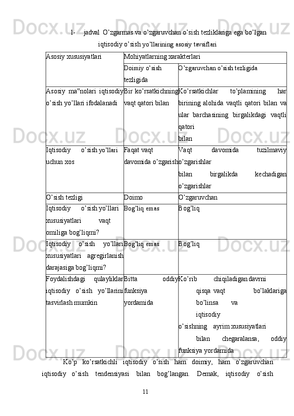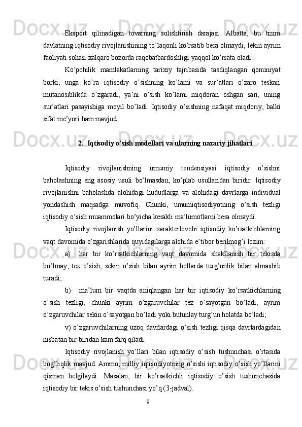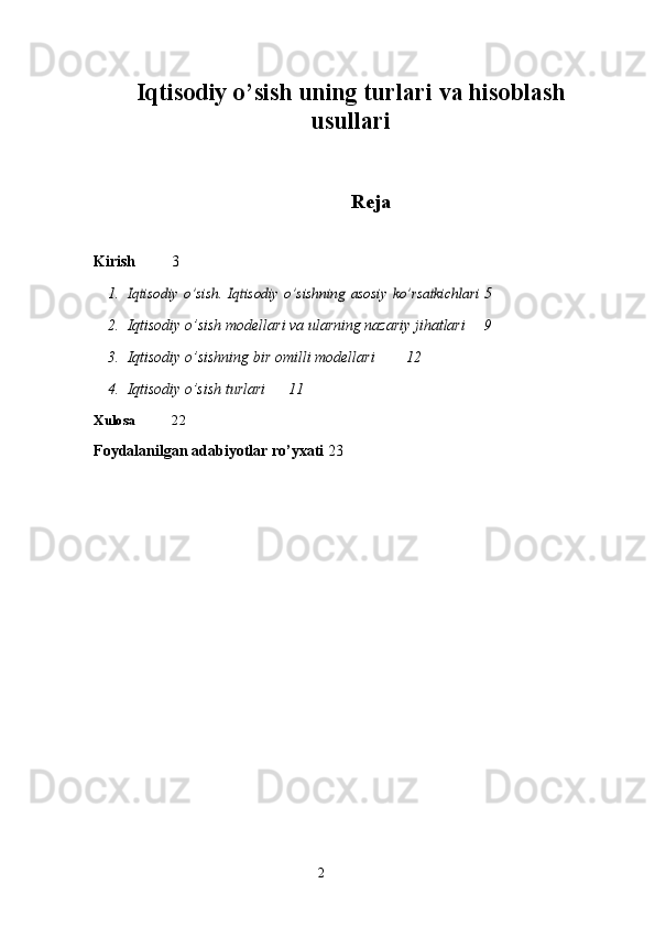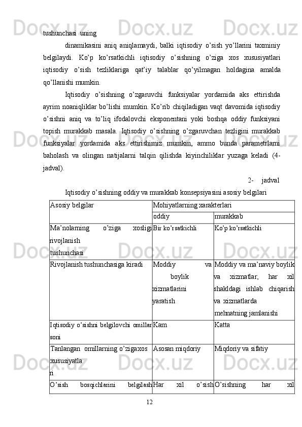 Iqtisodiy o’sish uning turlari va hisoblash usullari