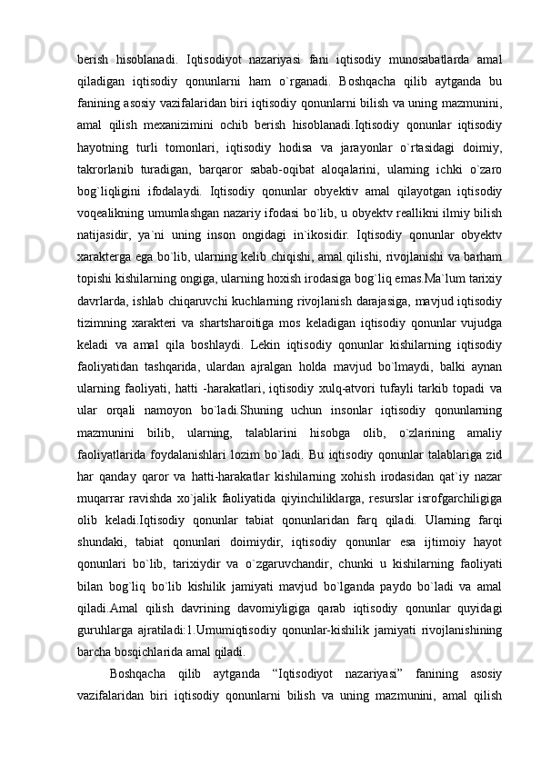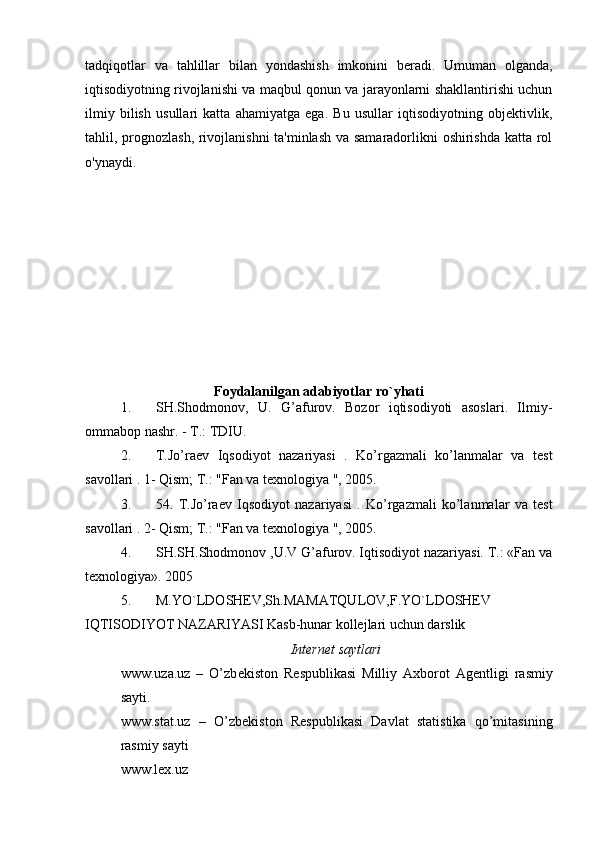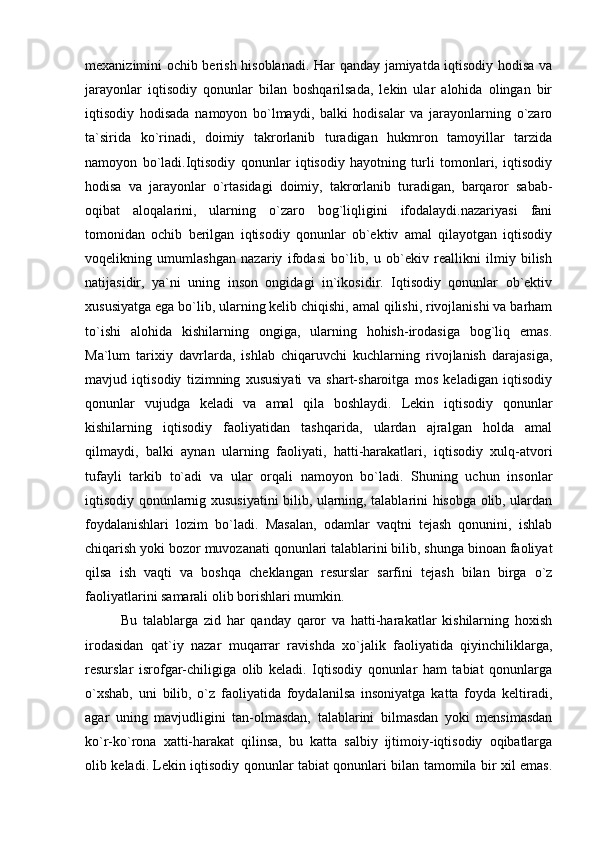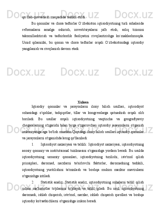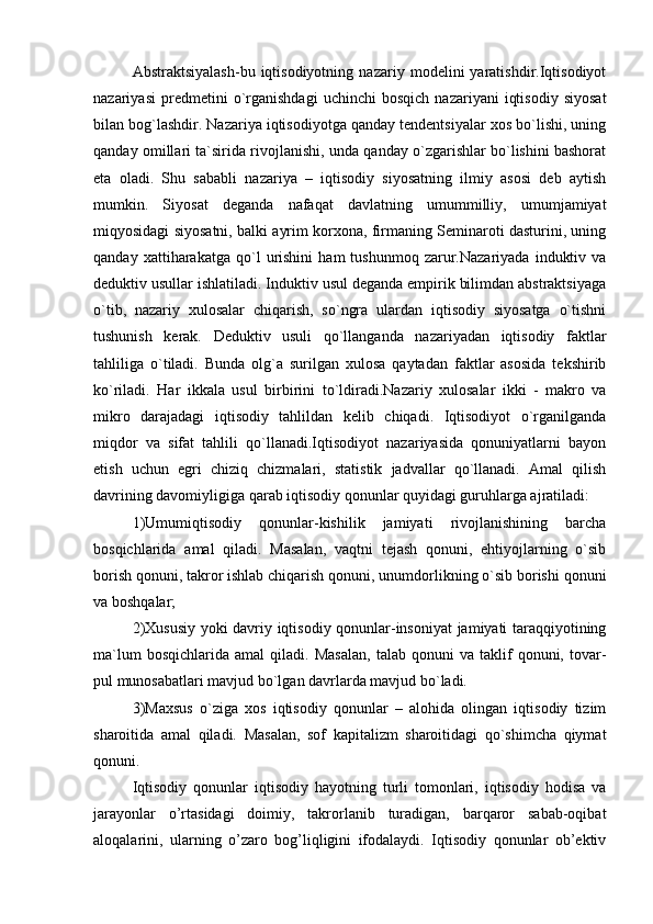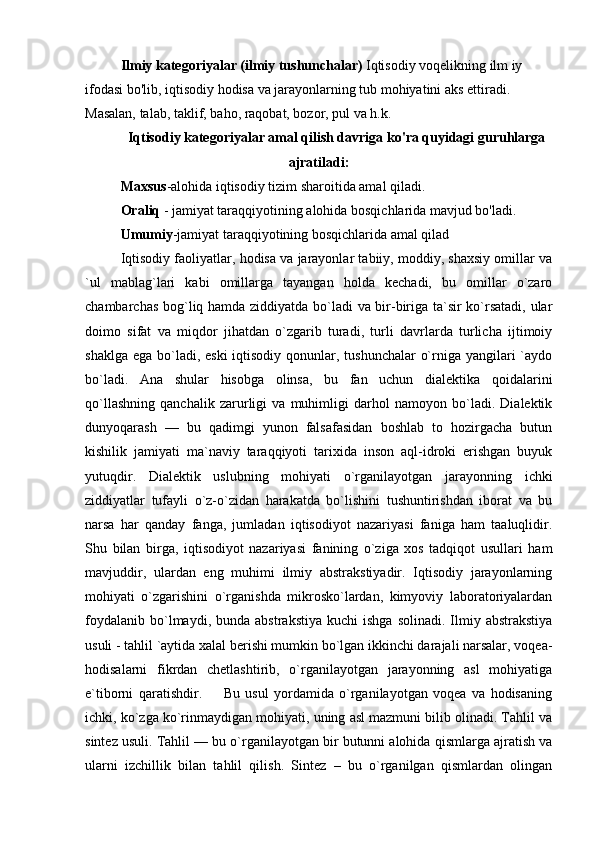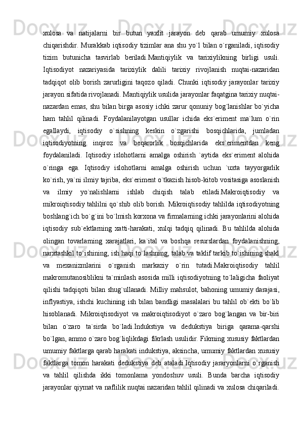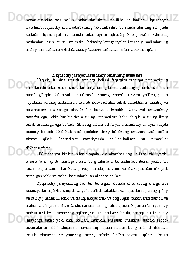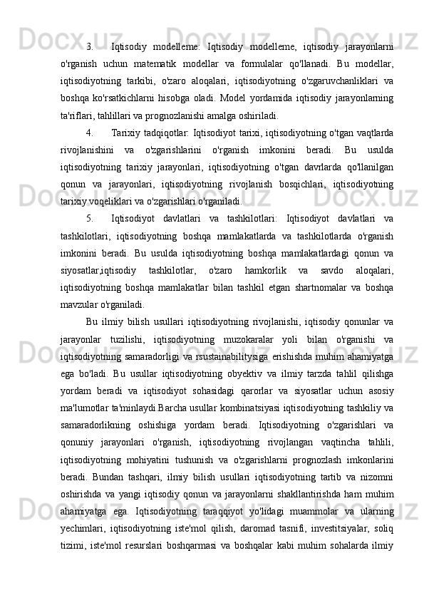 iqtisodiy qonunlar va jarayonlarni ilmiy bilish usullari