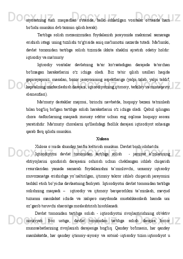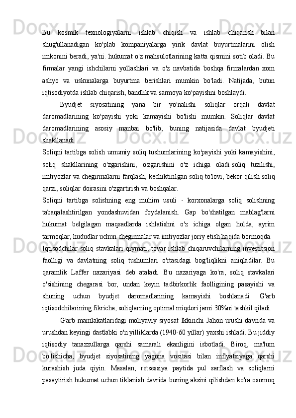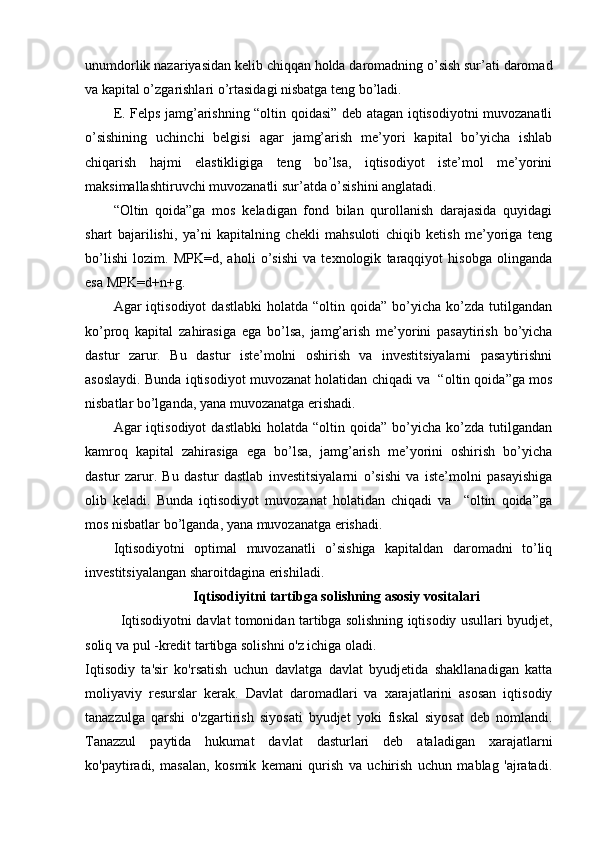 Iqtisodiy rivojlanishni davlat tomonidan tartibga solishning neoklassik modeli