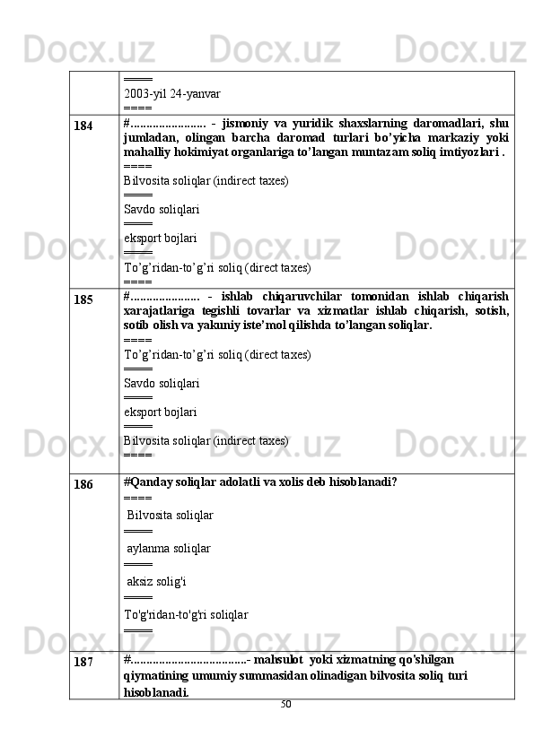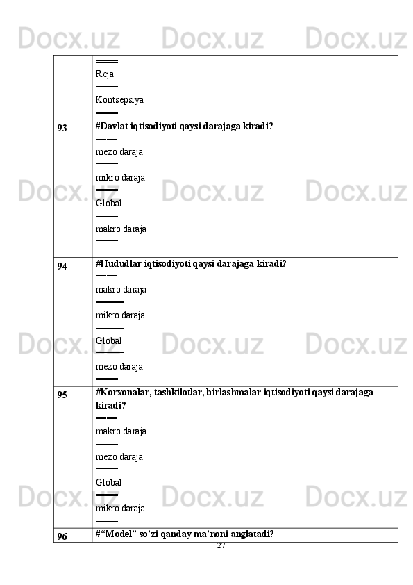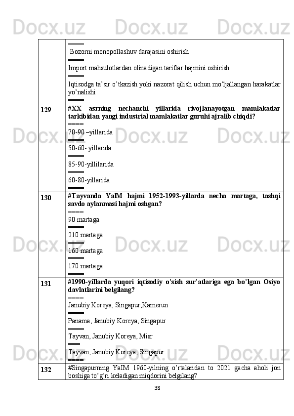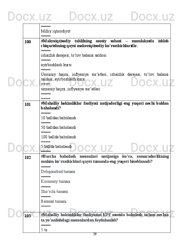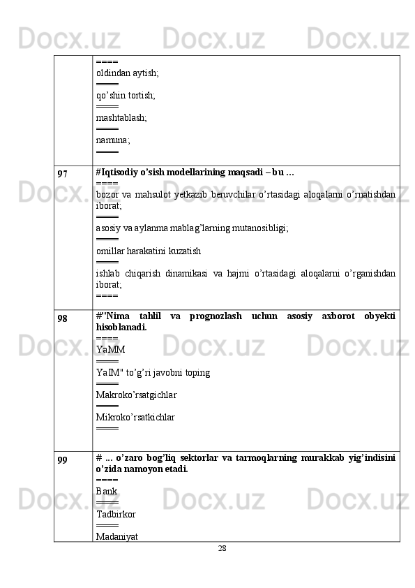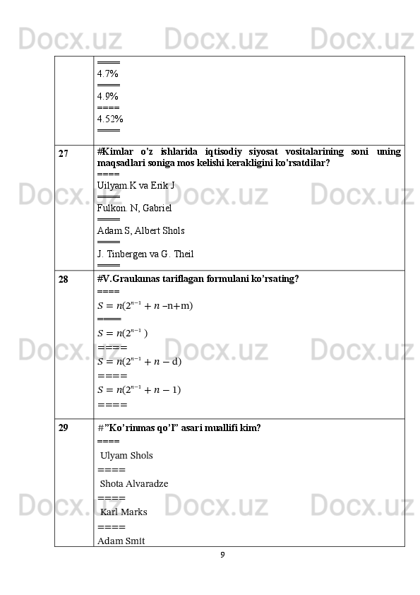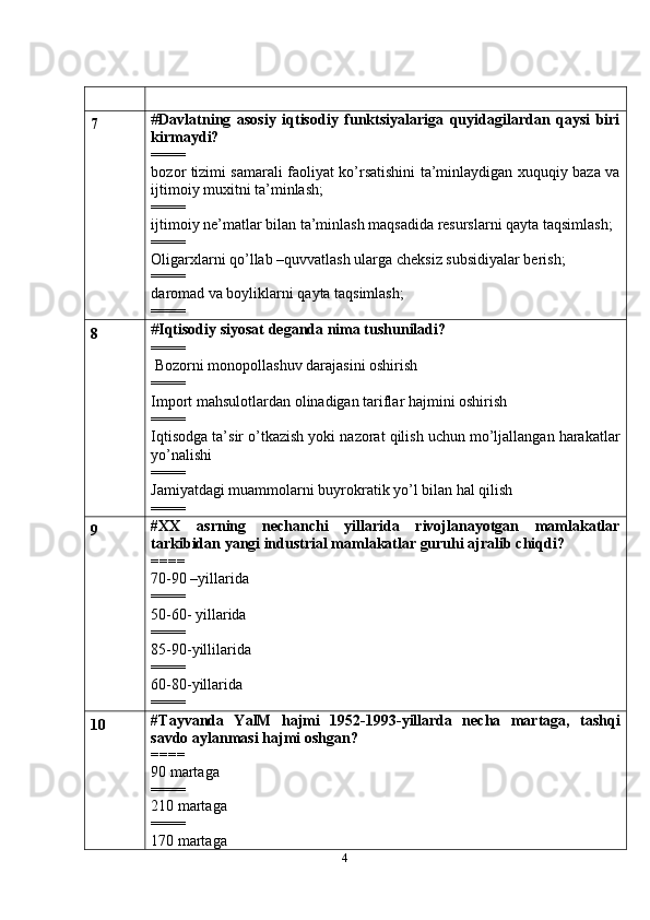 Iqtisodiy siyosatga kirish fanıdan test nazorat savollari