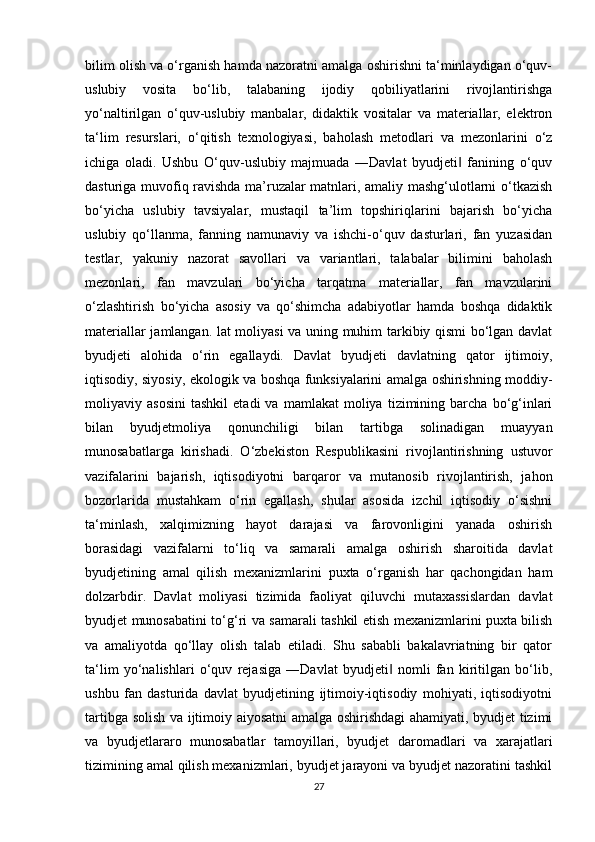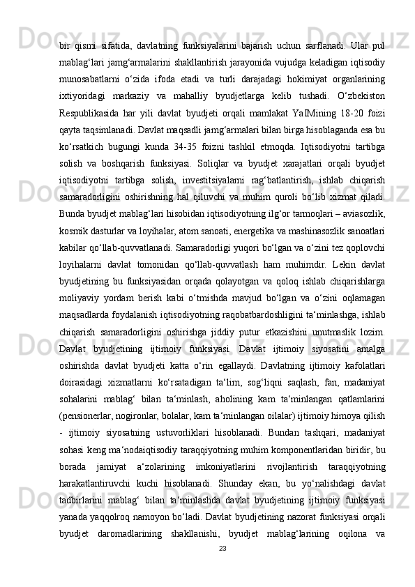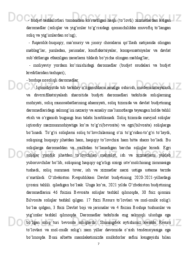 Iqtisodiy sub’ektlar faoliyatini davlat tomonidan moliyaviy tartibga solish instrumentlari