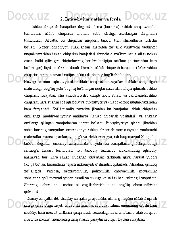 Iqtisodiy xarajatlar, uning tarkibi va turlari