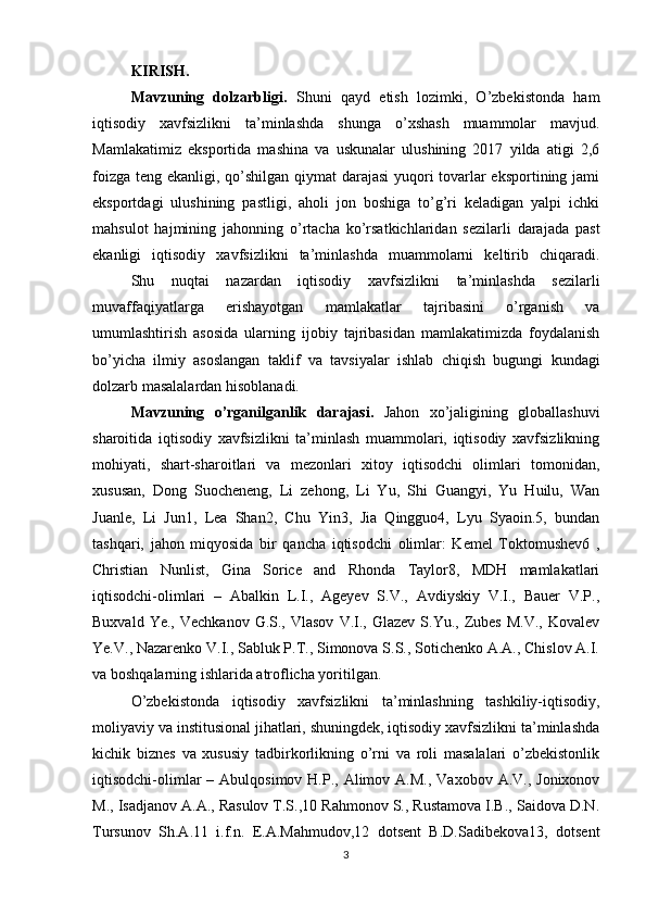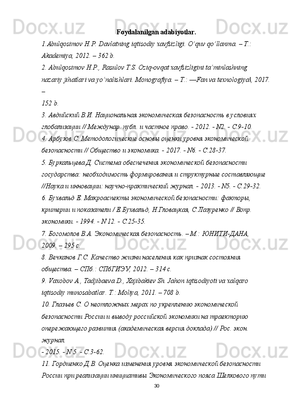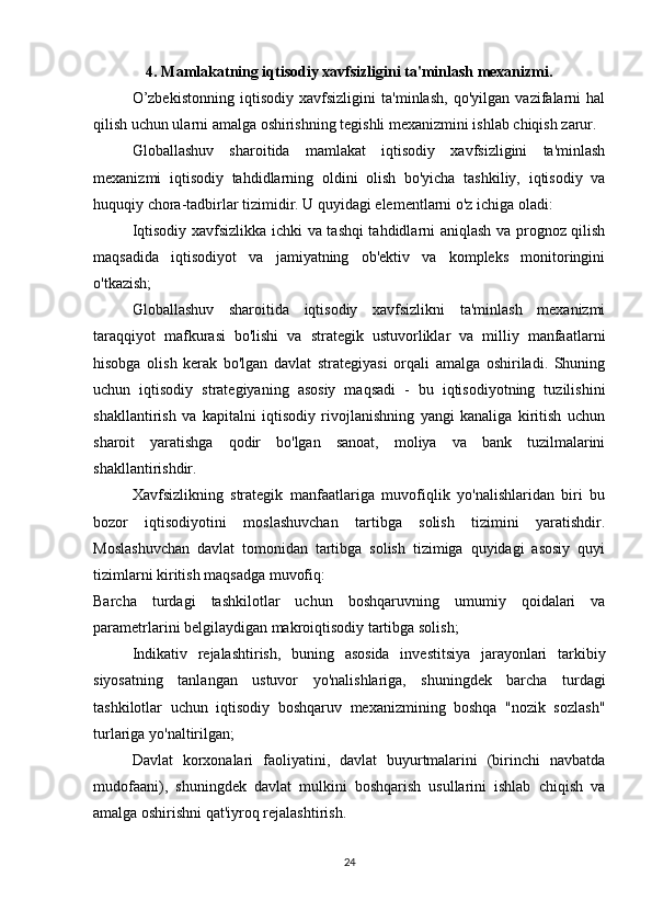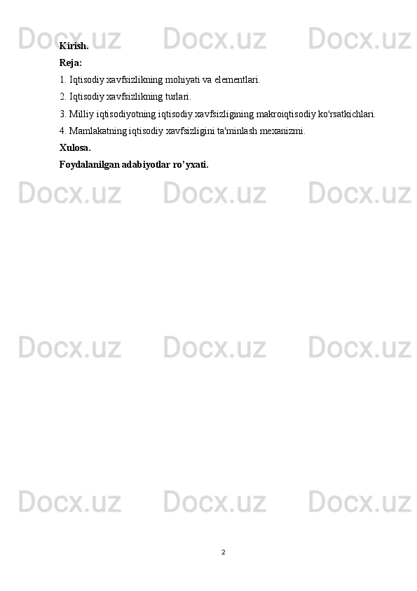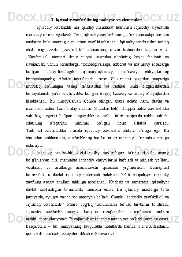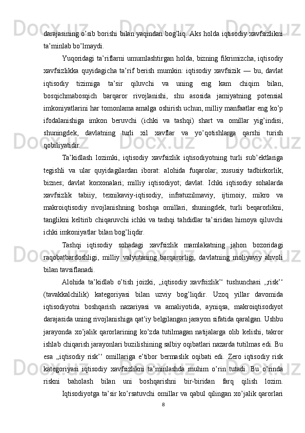 Iqtisodiy xavfsizlik turlari va tarkibiy elementlari