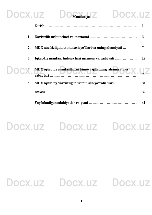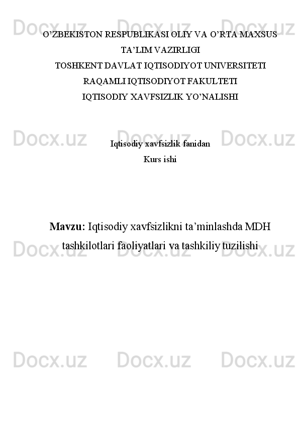 Iqtisodiy xavfsizlikni ta’minlashda MDH tashkilotlari faoliyatlari va tashkiliy tuzilishi