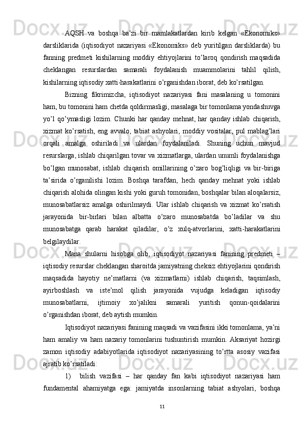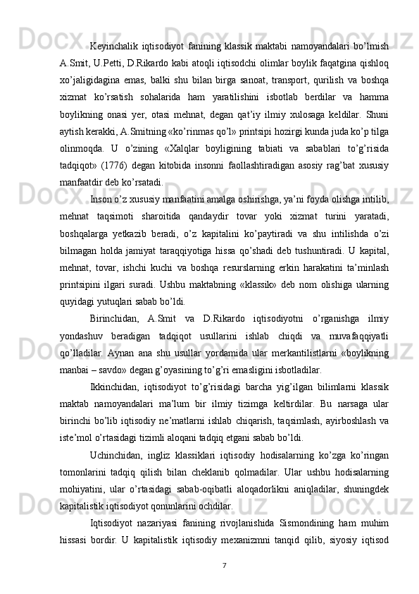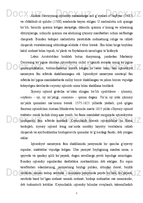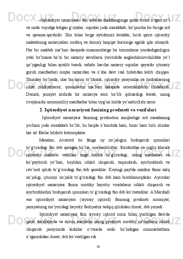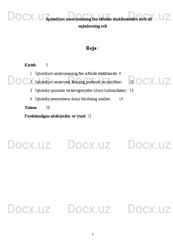 Iqtisodiyot nazariyasining fan sifatida shakllanishida turli xil oqimlarning roli