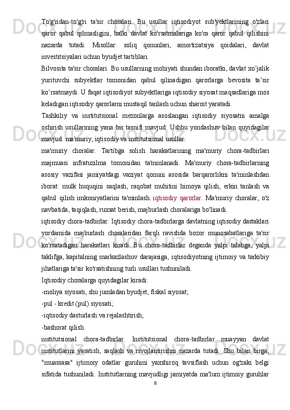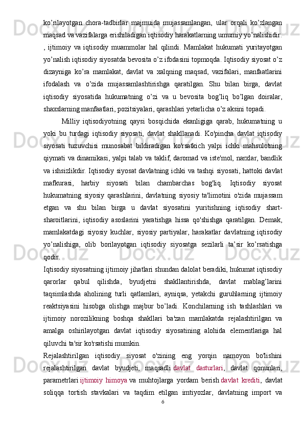 Iqtisodiyot siyosatining mohiyati zaruryati asosiy yo’nalishi