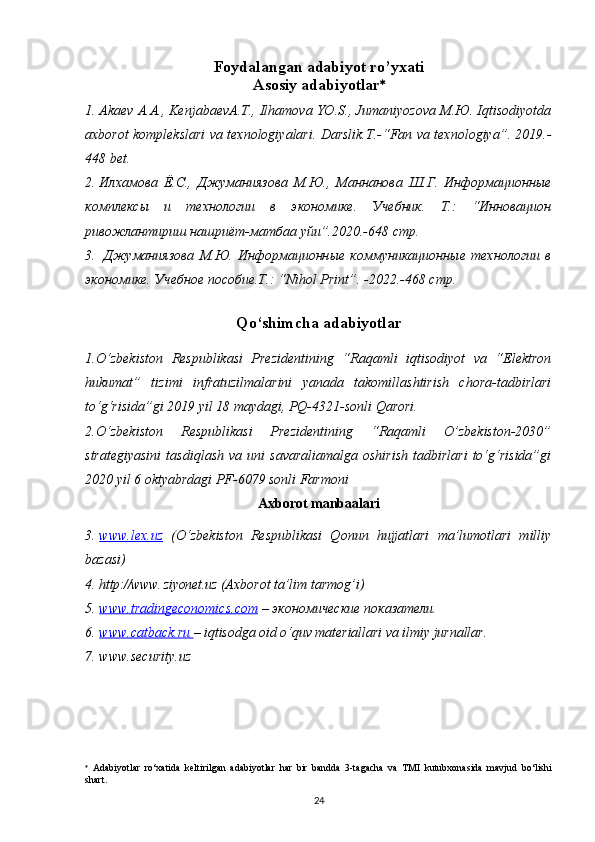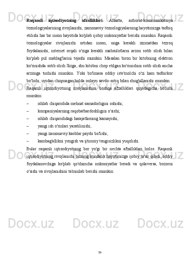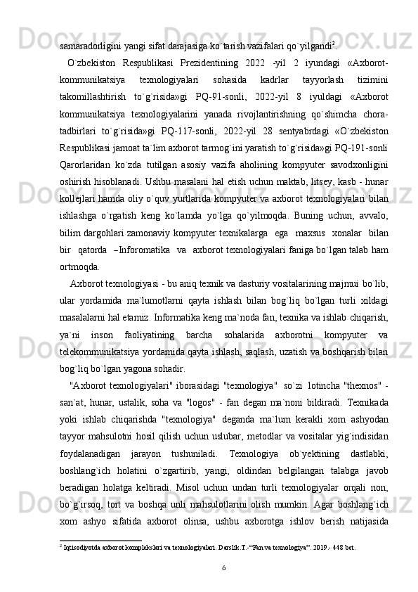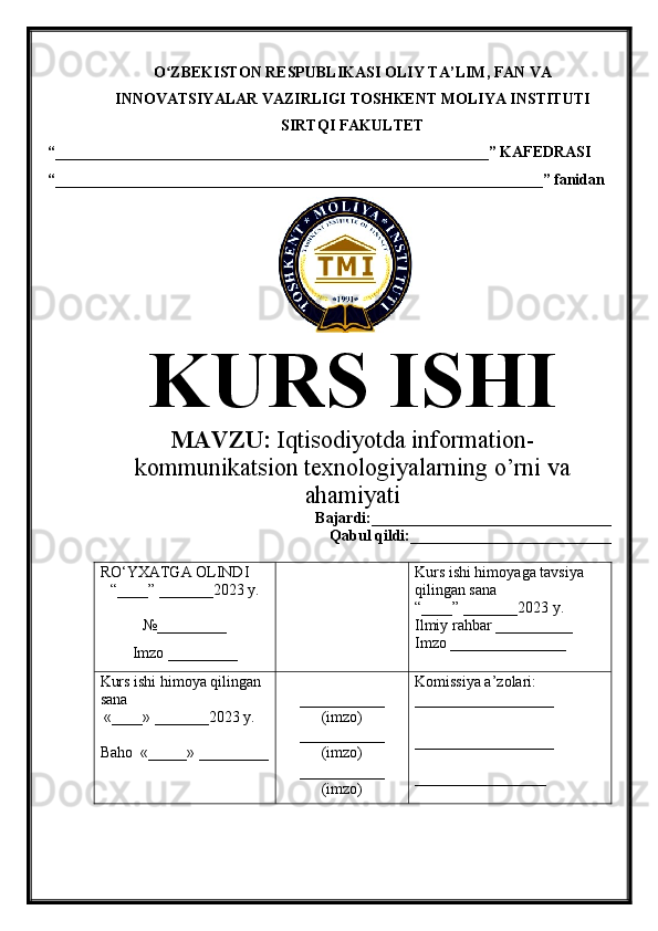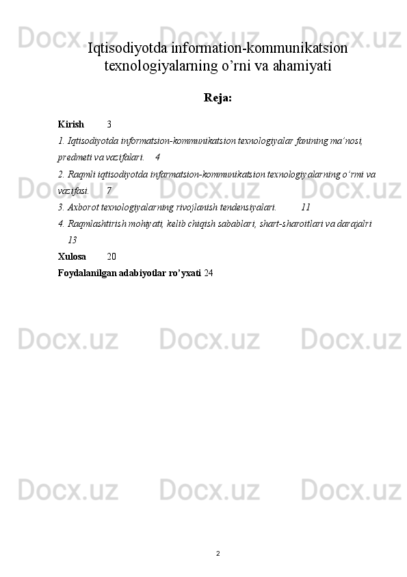 Iqtisodiyotda information-kommunikatsion texnologiyalarning o’rni va ahamiyati