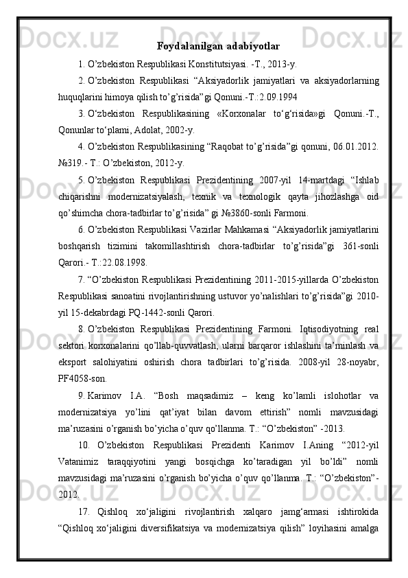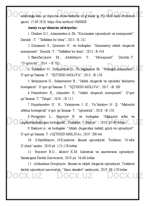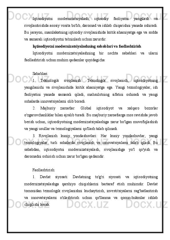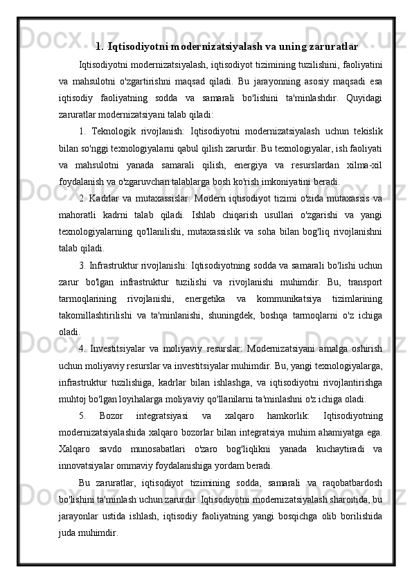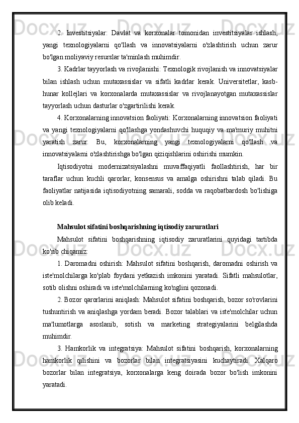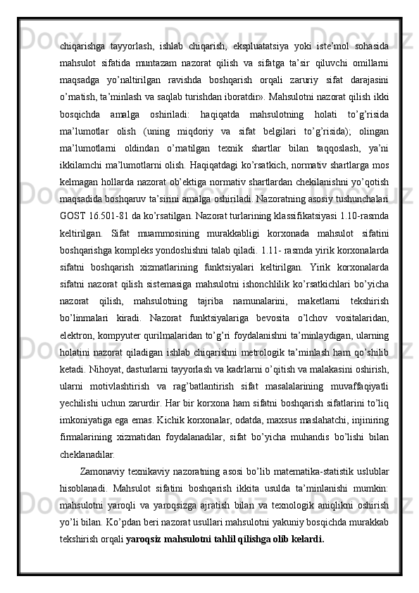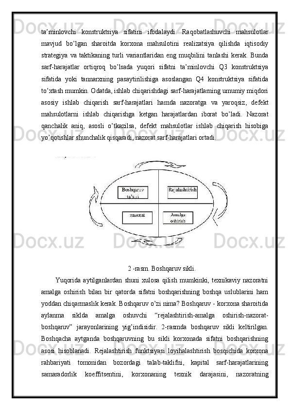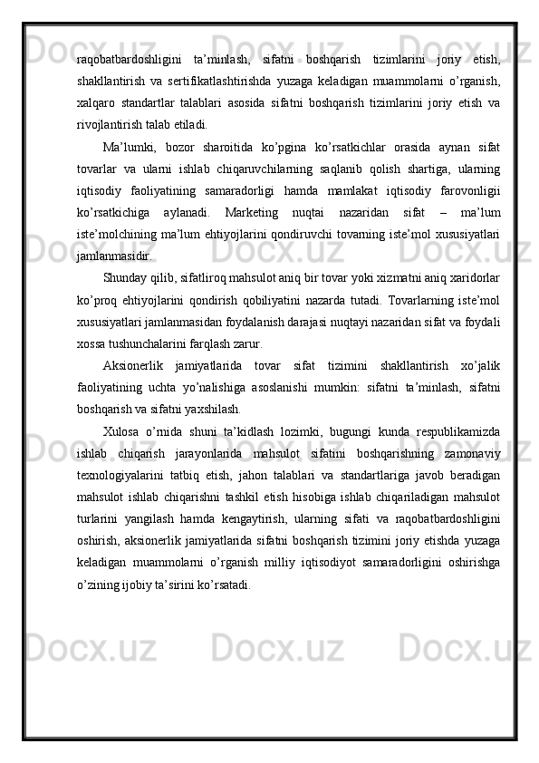 Iqtisodiyotni modernizatsiyalash sharoitida mahsulot sifatini boshqarish