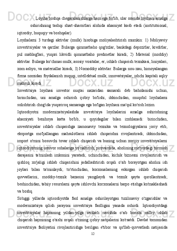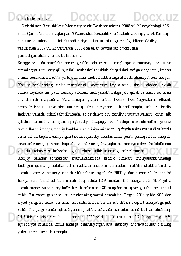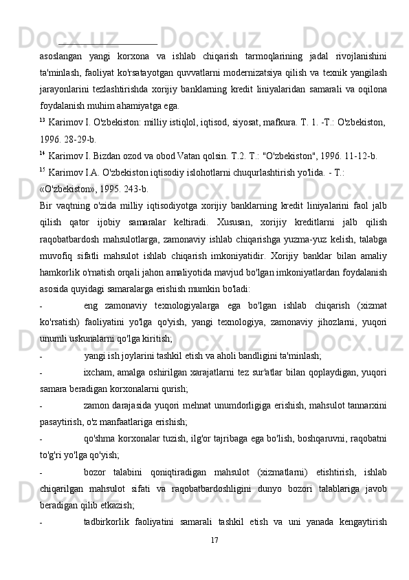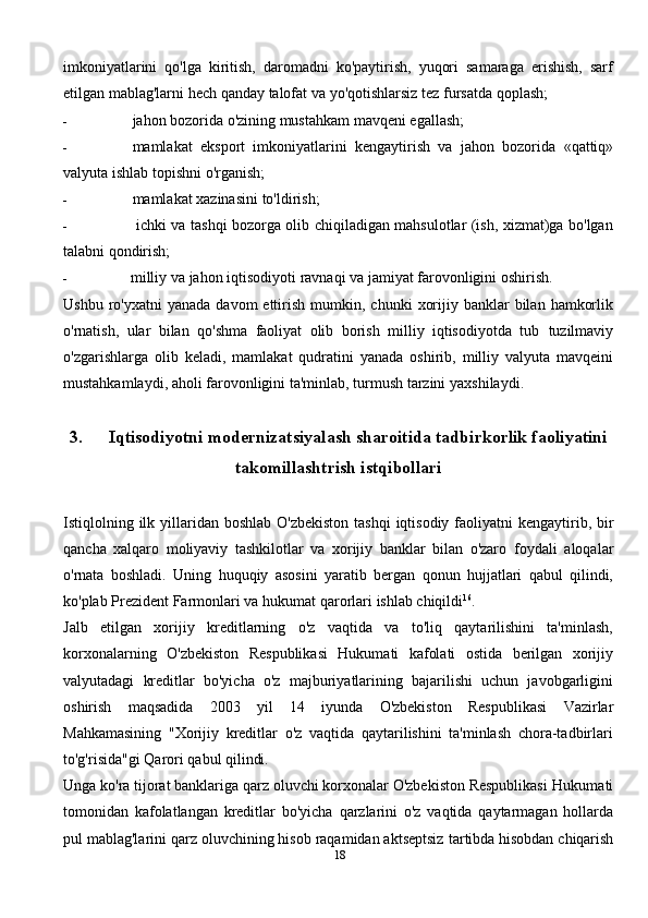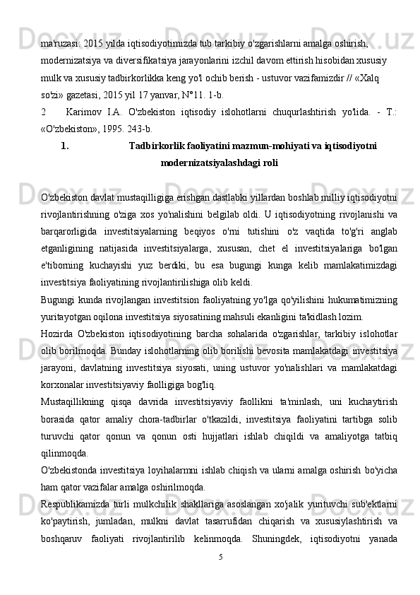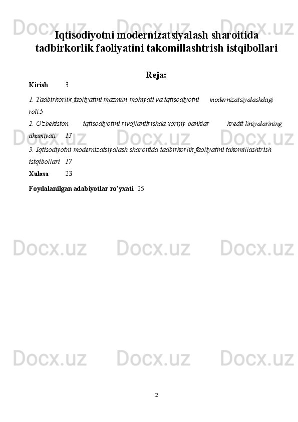 Iqtisodiyotni modernizatsiyalash sharoitida tadbirkorlik faoliyatini takomillashtrish istqibollari