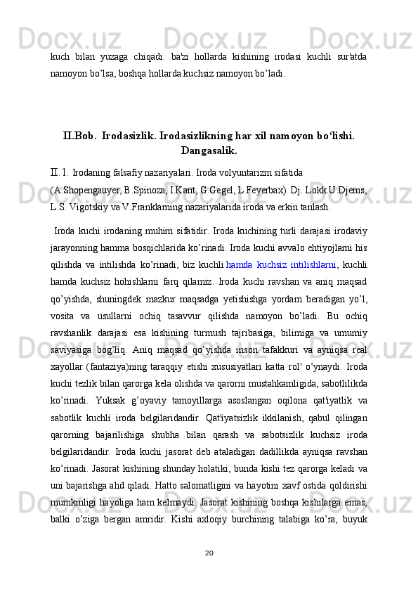 bartaraf   qilishga   to’g’ri   keladi.   Irodaning   bunday   ko’rinishi   shaxsning   eng