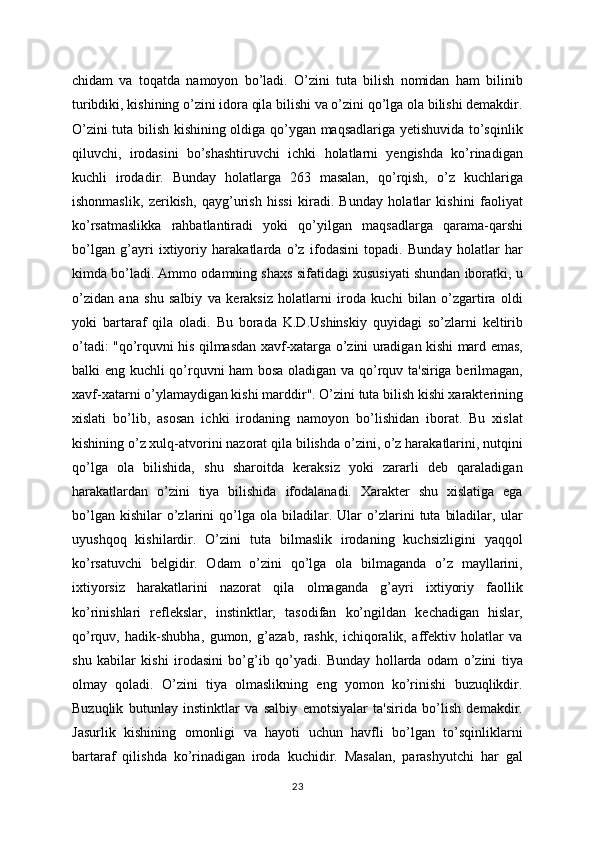 yo’qligi   irodaning   kuchsizligini   ko’rsatadi.   Buni   qo’rqoqlik,   nomardlik   deb