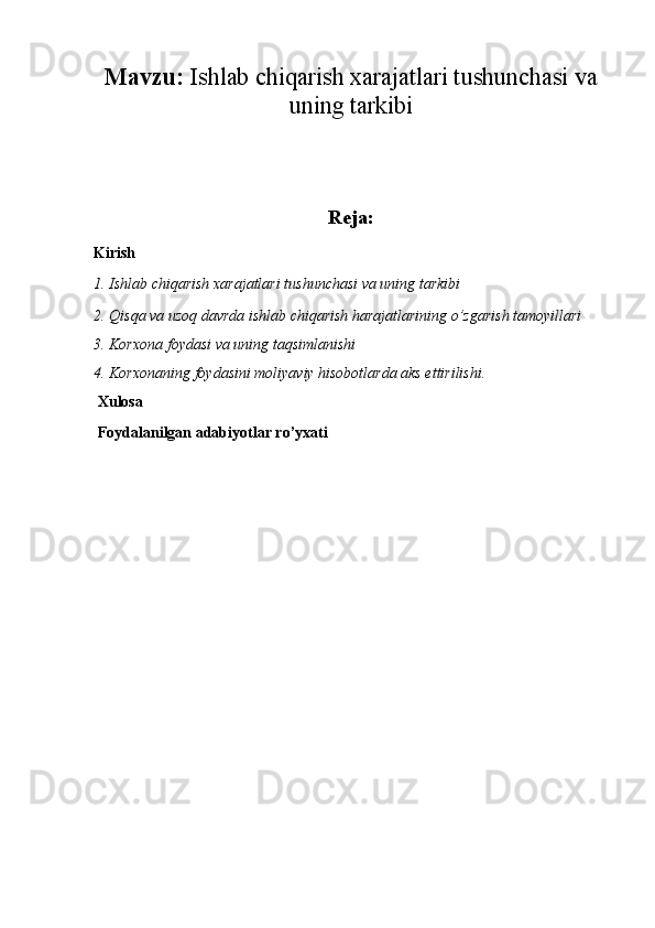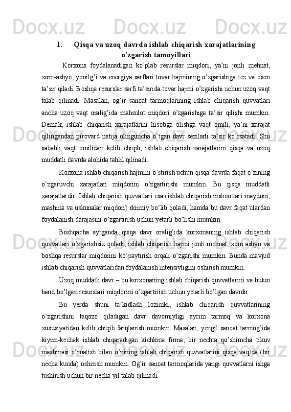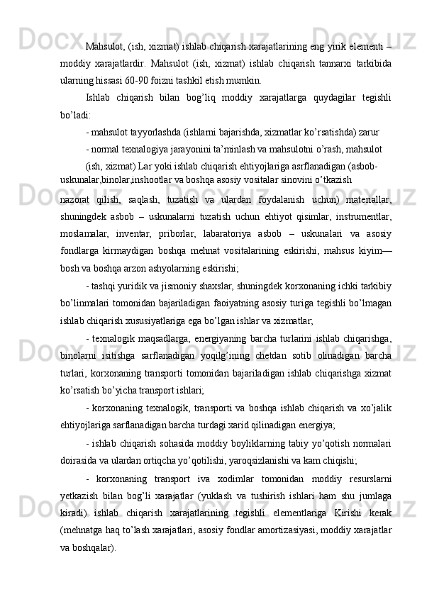Ishlab chiqarish xarajatlari tushunchasi va uning tarkibi