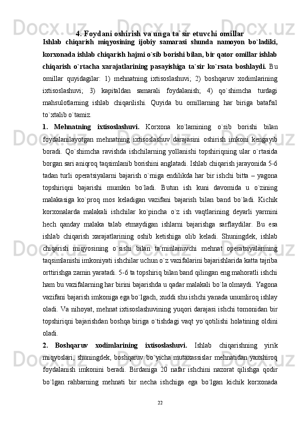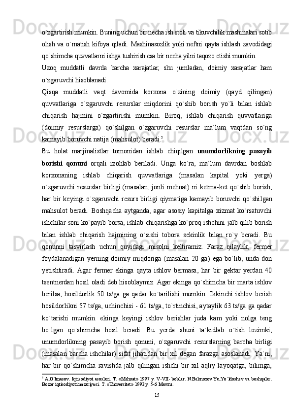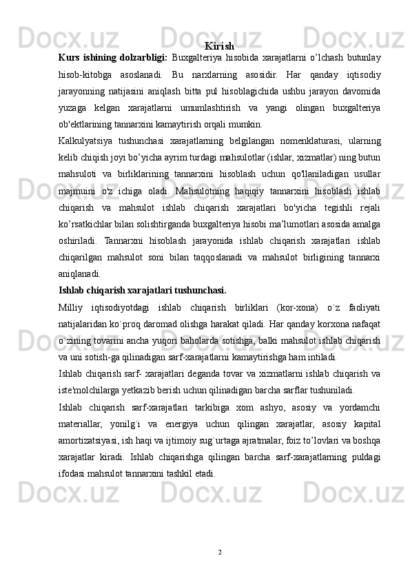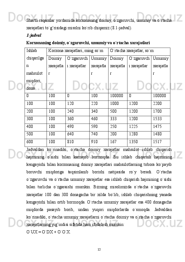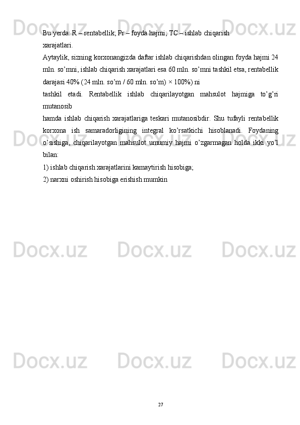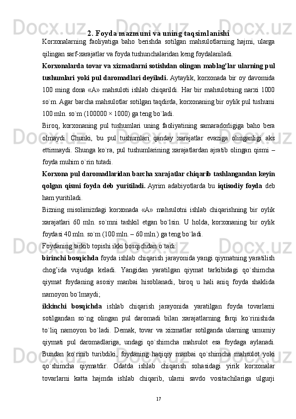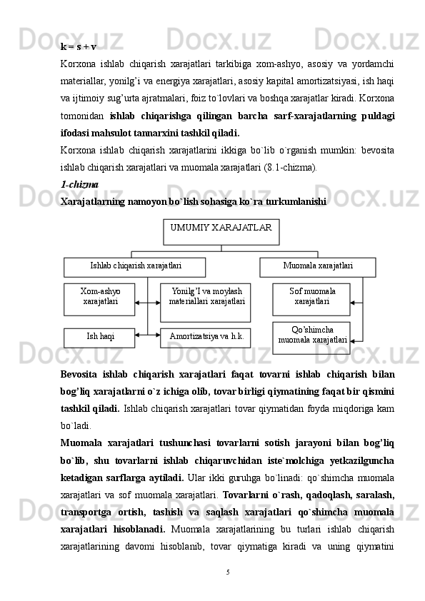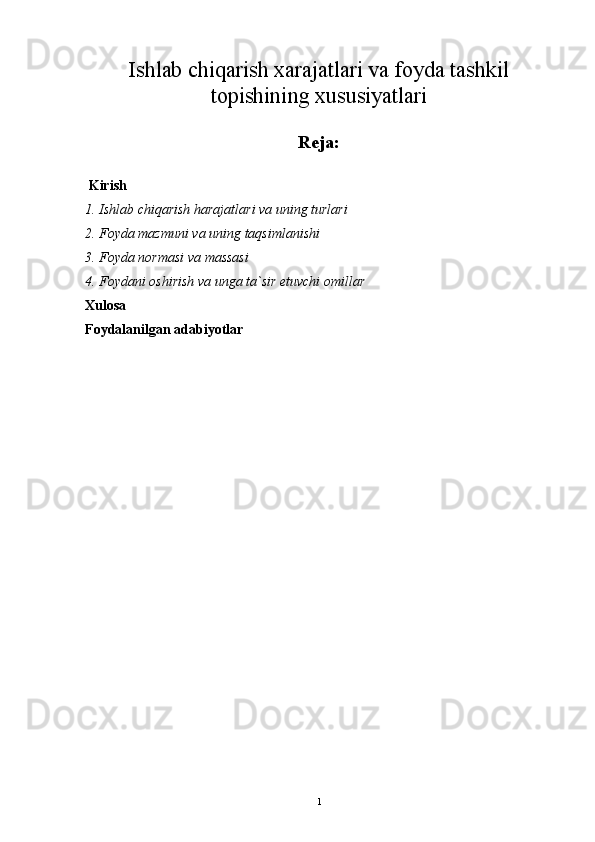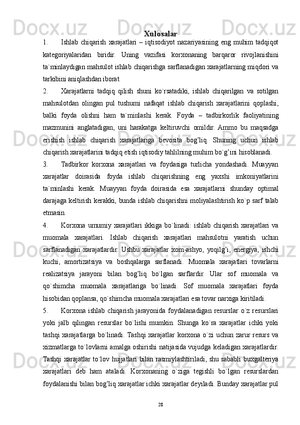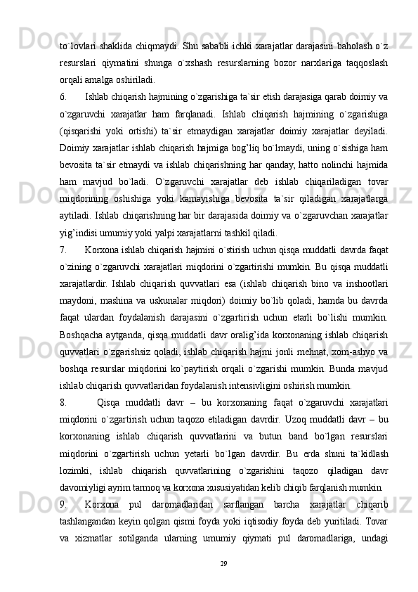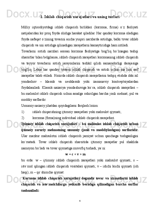 Ishlab chiqarish xarajatlari va foyda tashkil topishining xususiyatlari