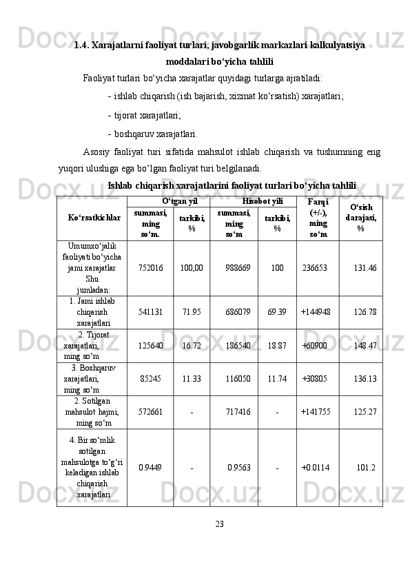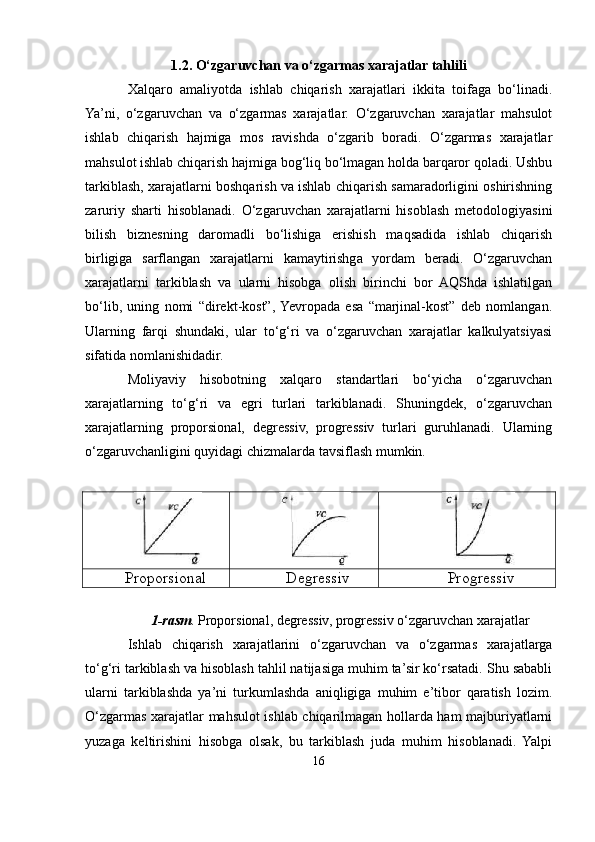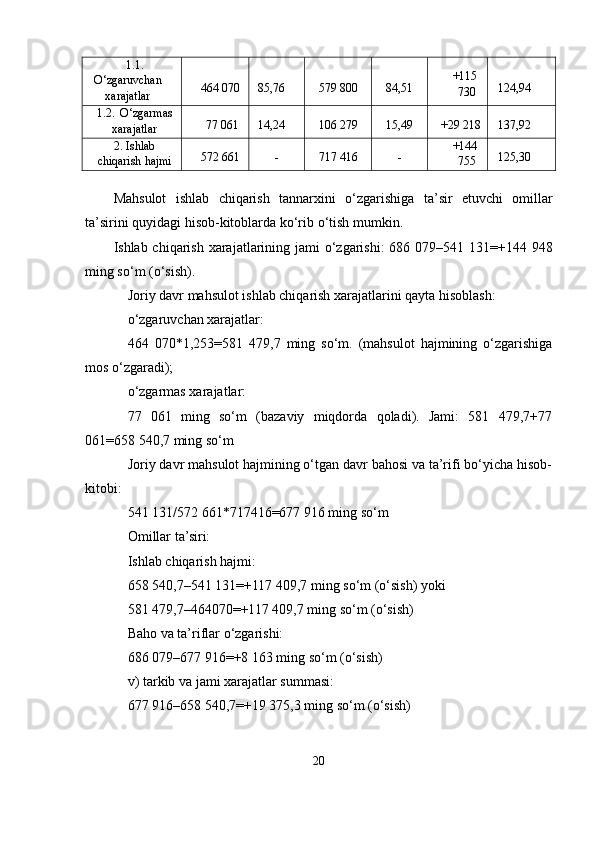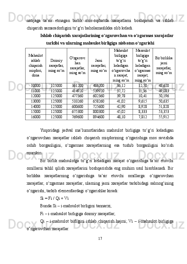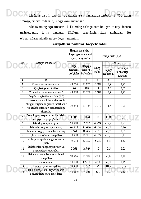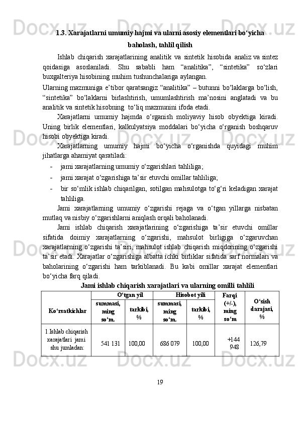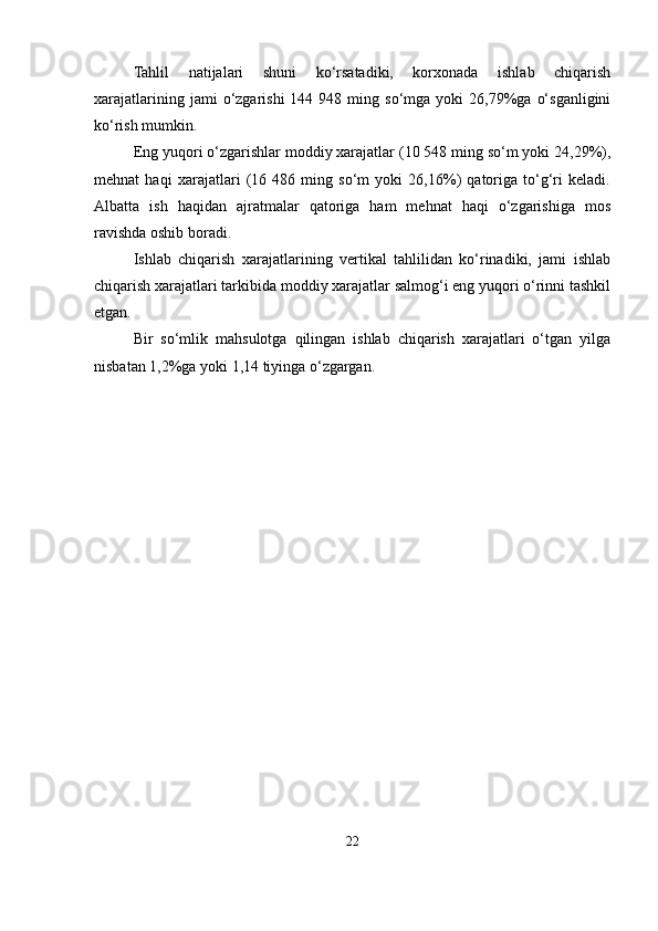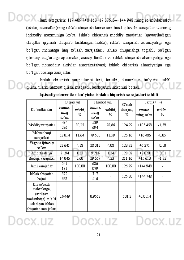 Ishlab chiqarish xarajatlari va mahsulotning sig'imiyligi tahlili