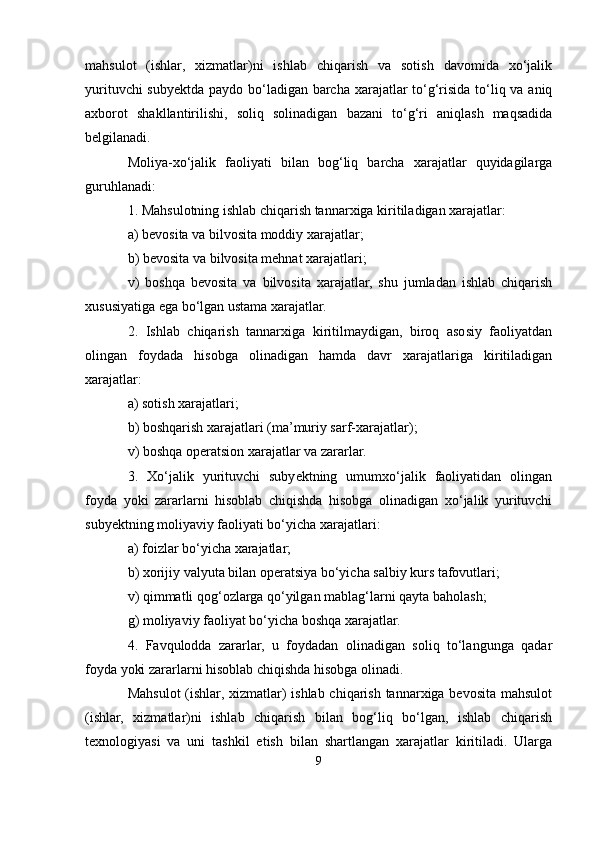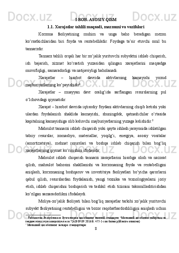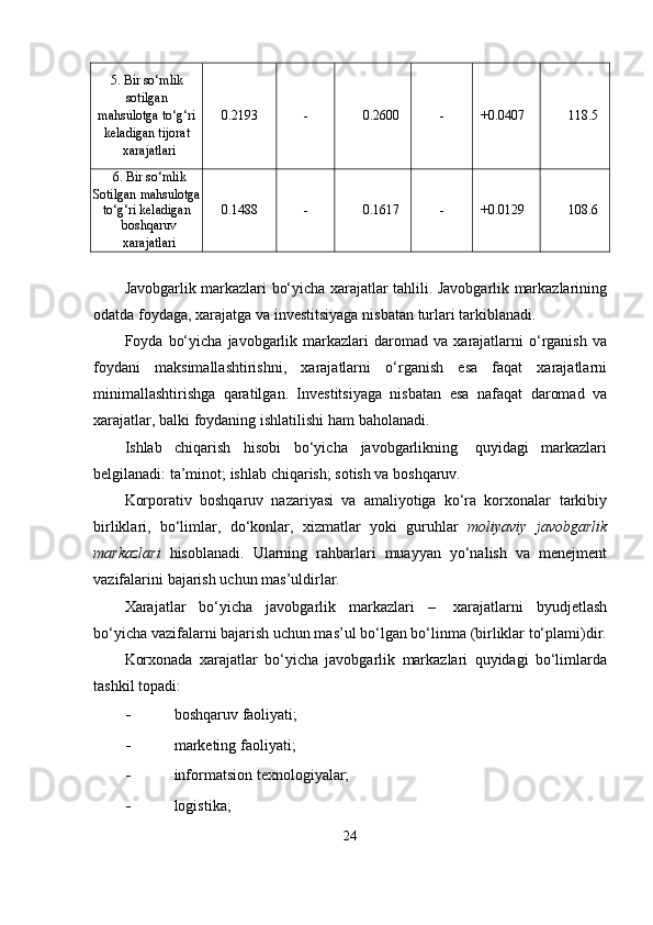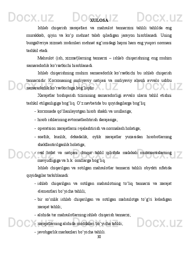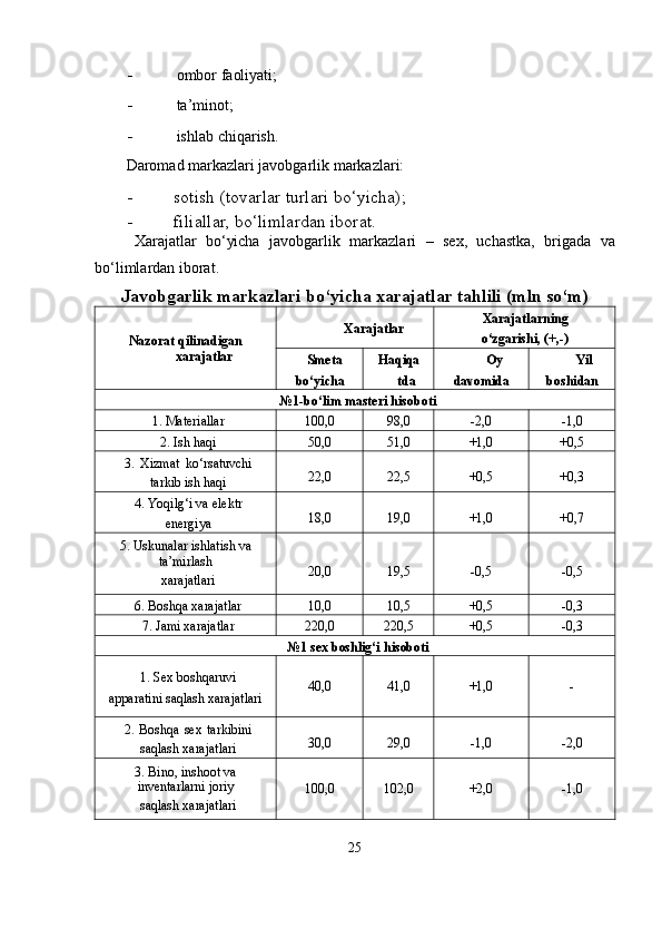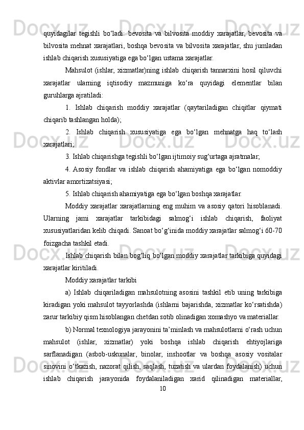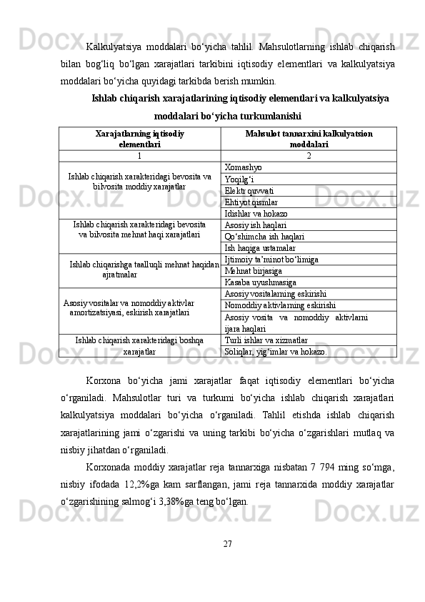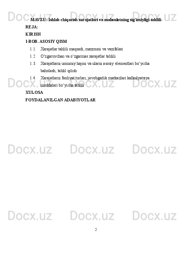 Ishlab chiqarish xarajatlari va mahsulotning sig'imiyligi tahlili