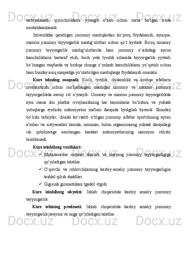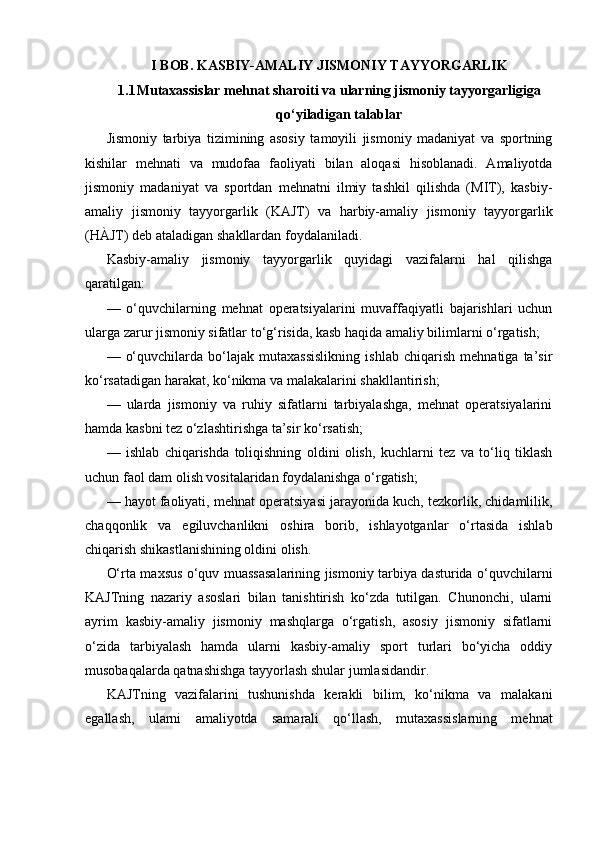 Ishlab chiqarishda kasbiy amaliy jismoniy tayyorgarlik