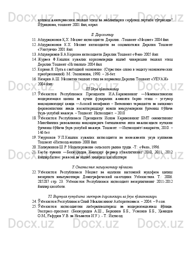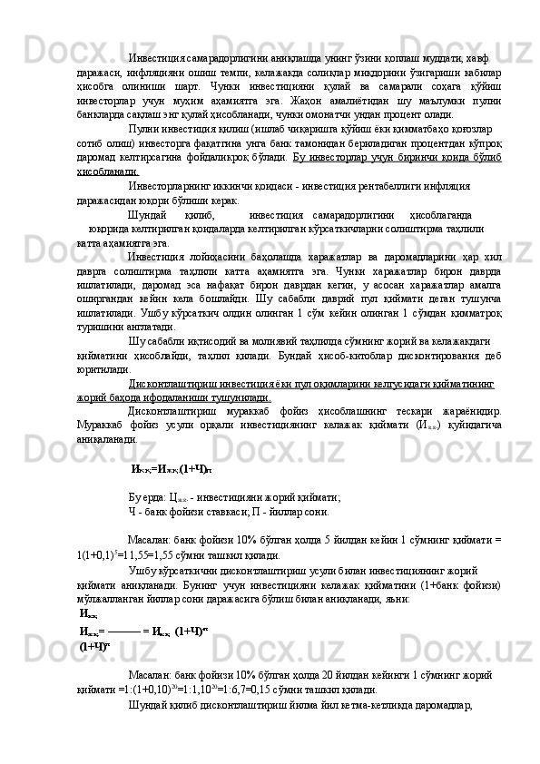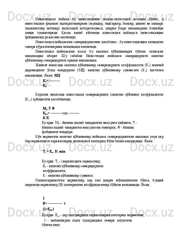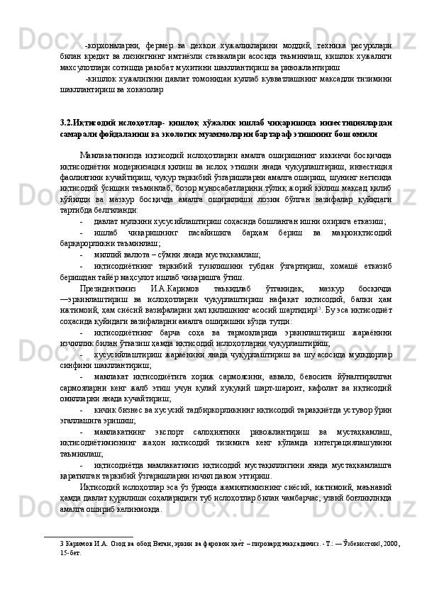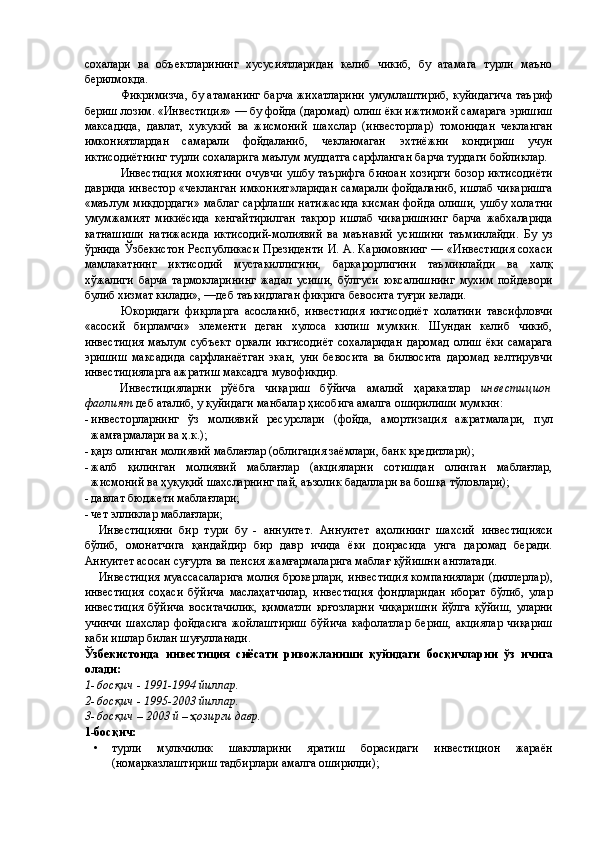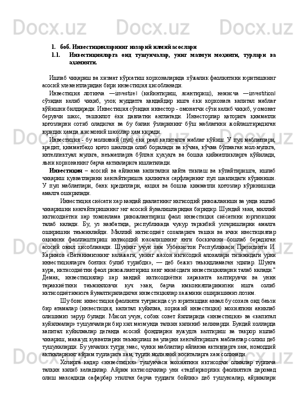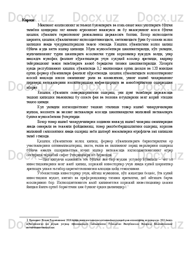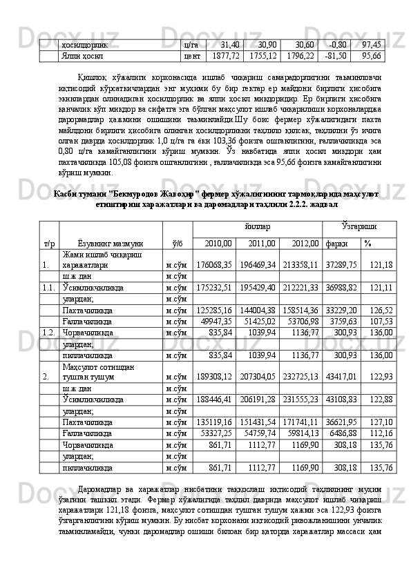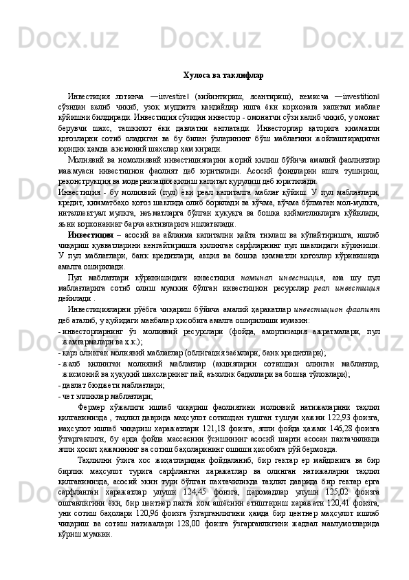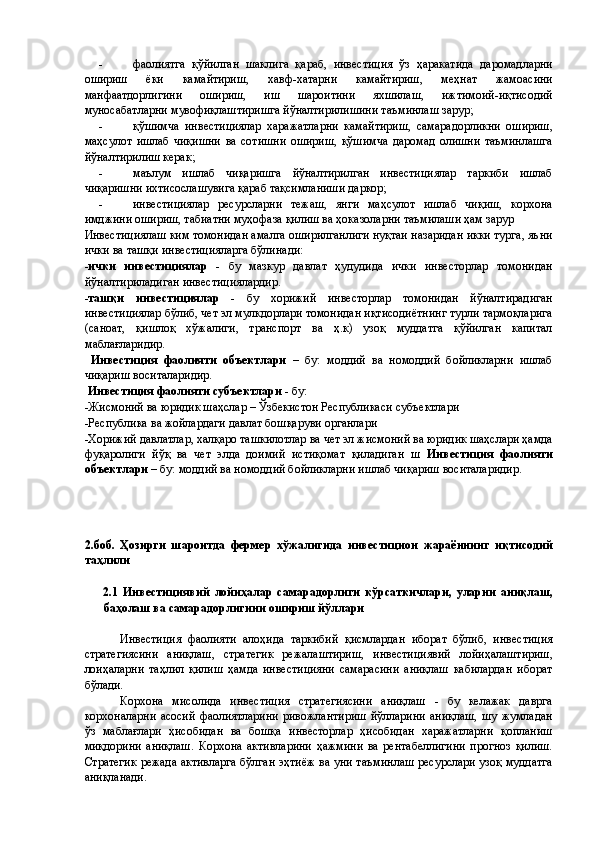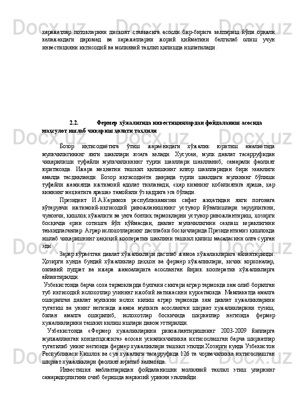 Қишлоқ хўжалигида инвестициялар ва уларнинг самарадорлигини ошириш йўллари