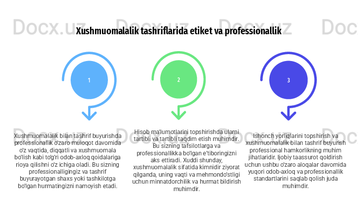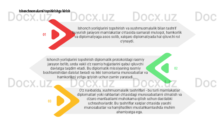 ahamiyatga ega.01 Ishonch yorliqlarini topshirish va xushmuomalalik bilan tashrif