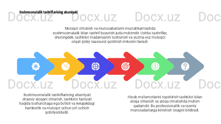 orqali ijobiy taassurot qoldirish imkonini beradi.Xushmuomalalik tashriflarining ahamiyati