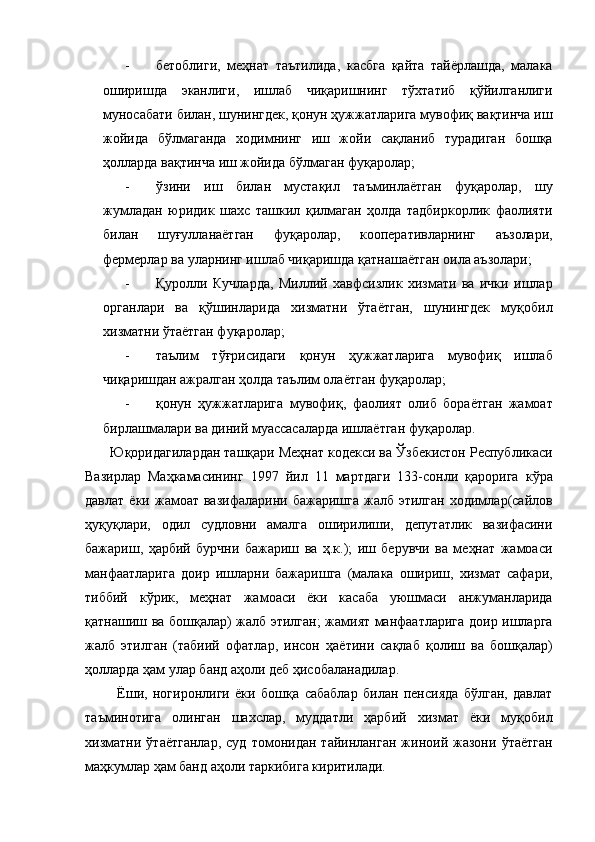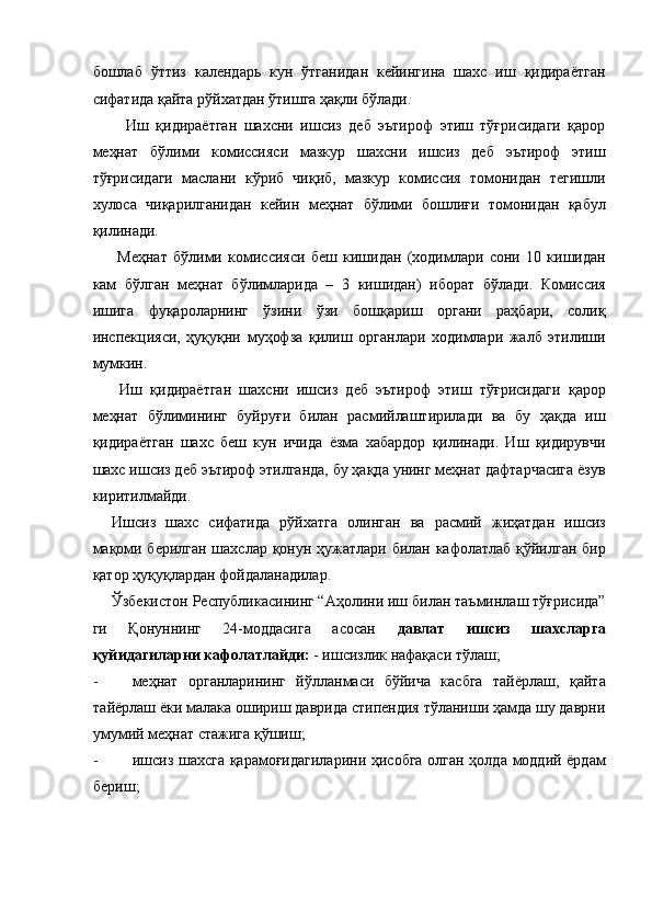 Ишсиз шахс ва унинг ҳуқуқий мақоми