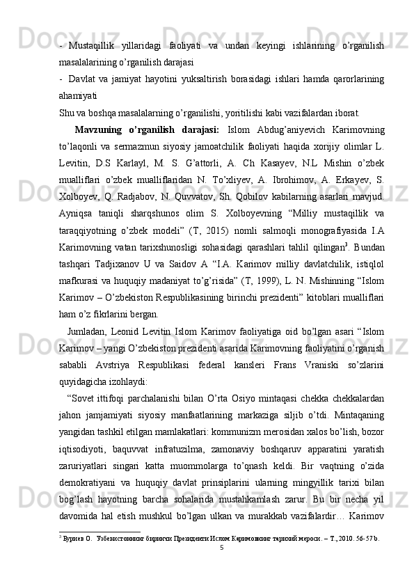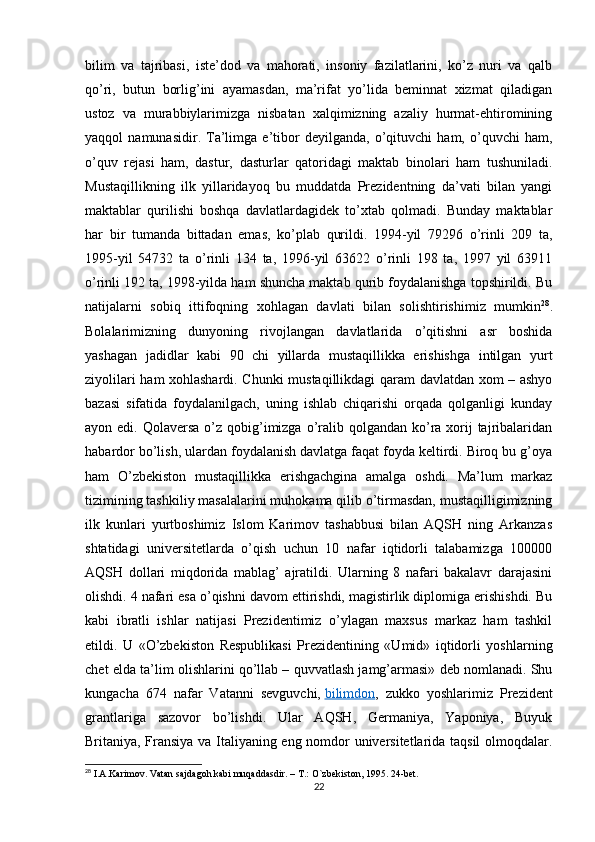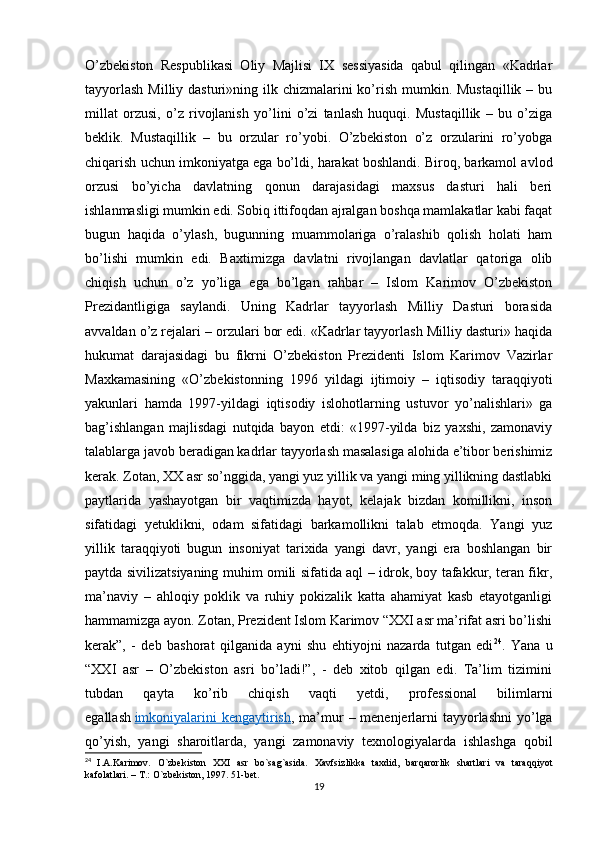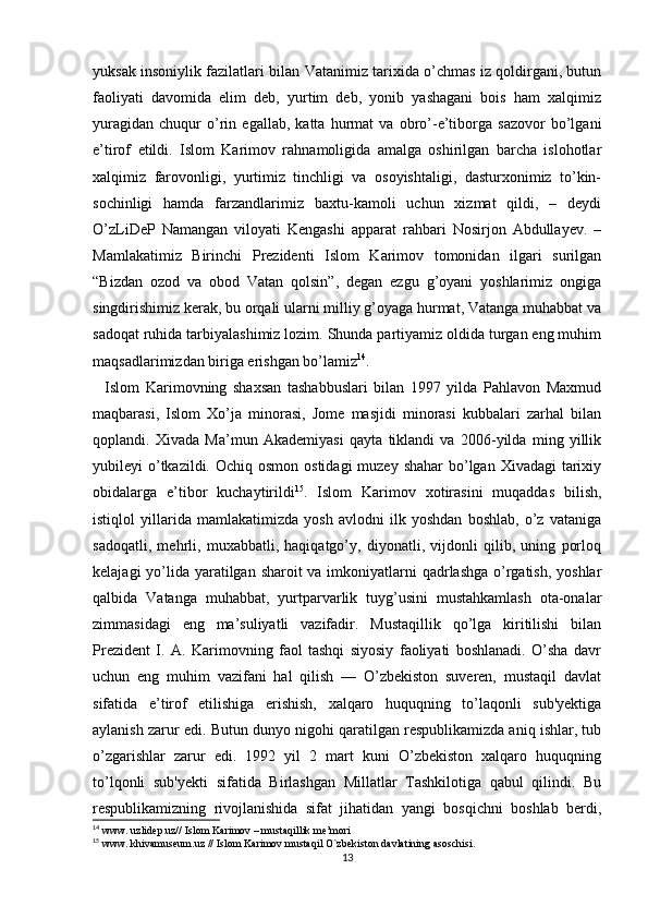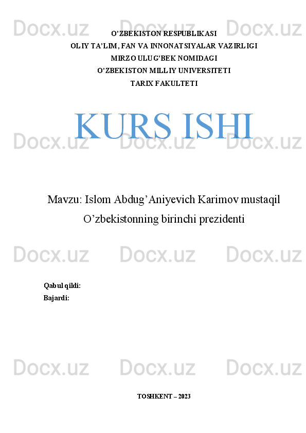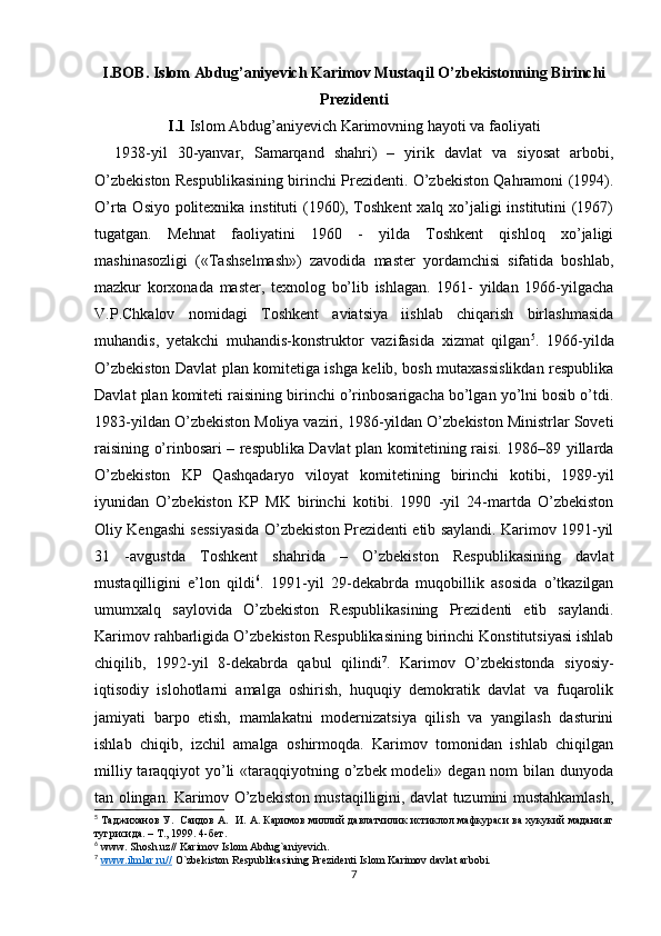Islom Abdug’Aniyevich Karimov mustaqil O’zbekistonning birinchi prezidenti