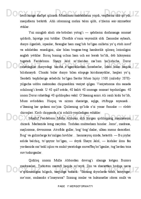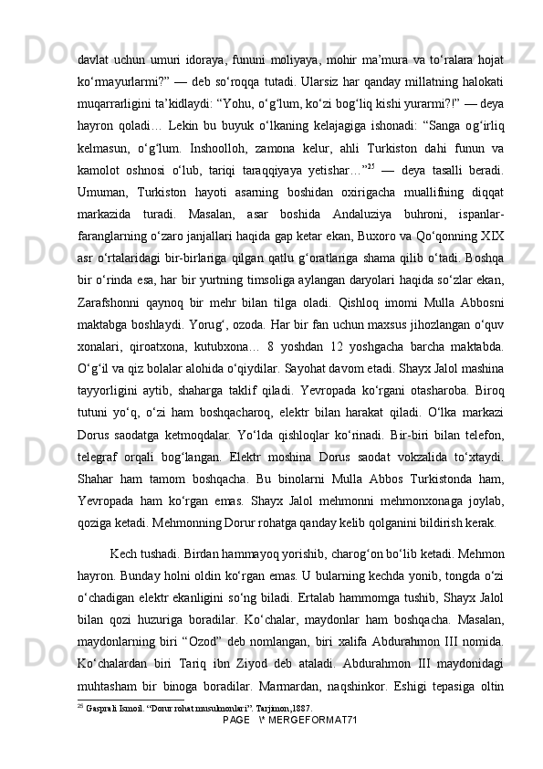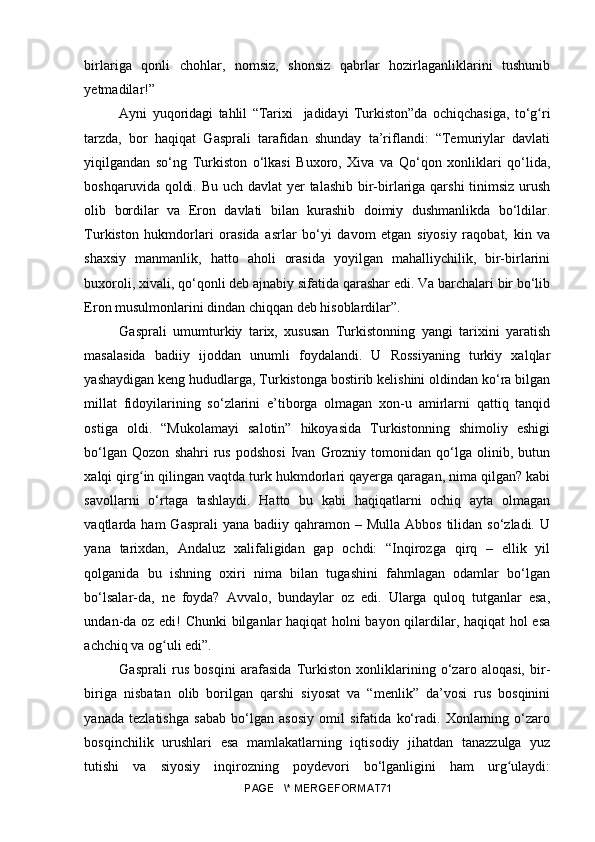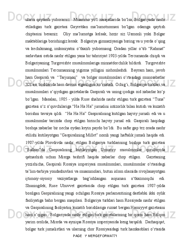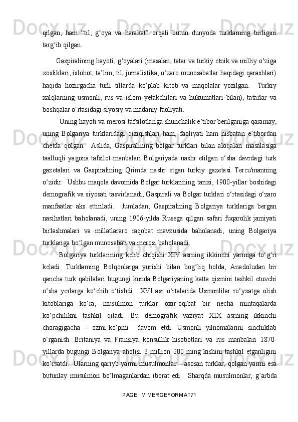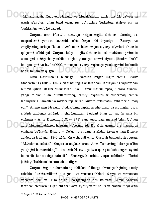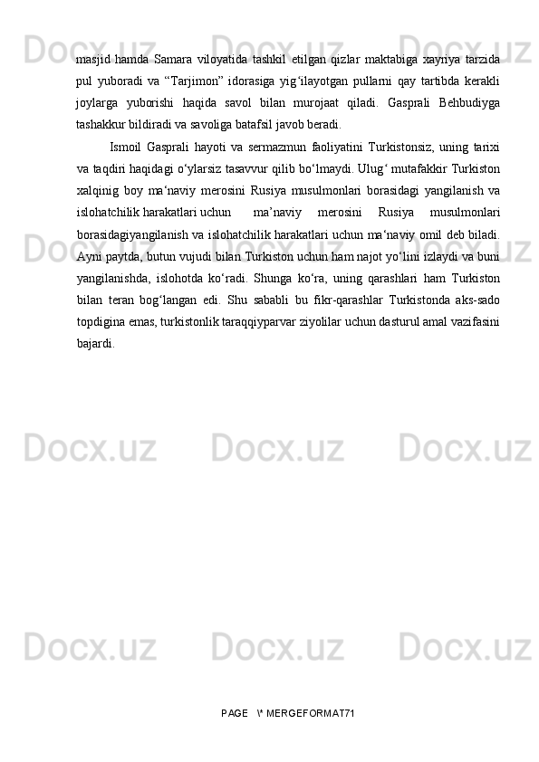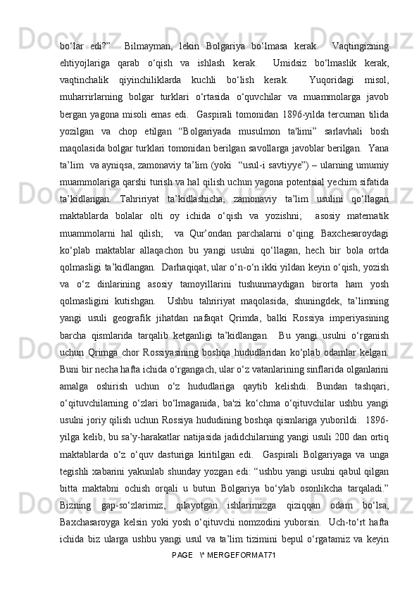 I. BOB. ISMOIL GASPRALINING HAYOTI, IJODI VA “DORUR ROHAT MUSULMONLARI” ASARIDA OBRAZLAR TIZIMINING AHAMIYATI………………………….…………………………………….….....6