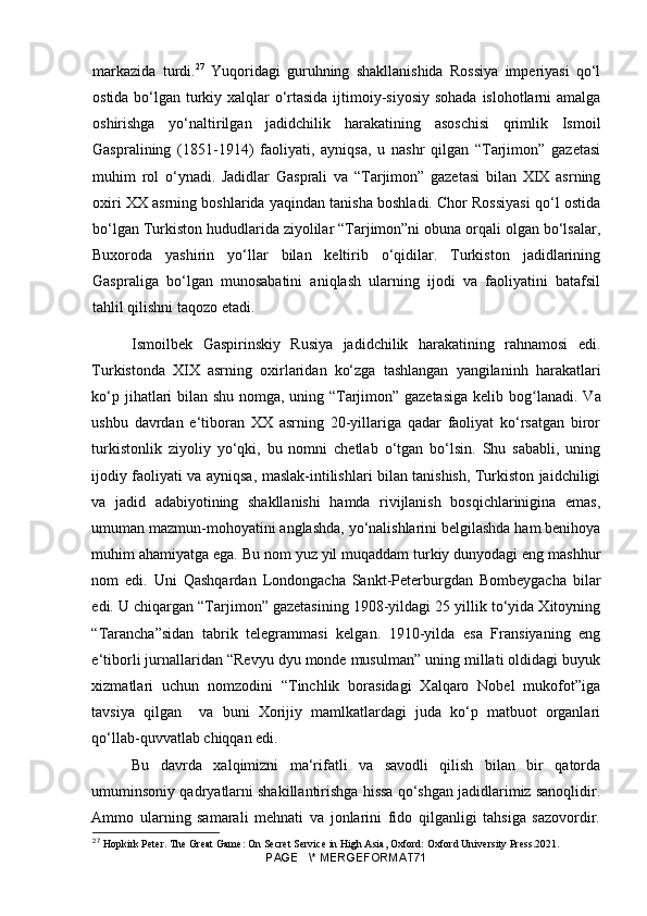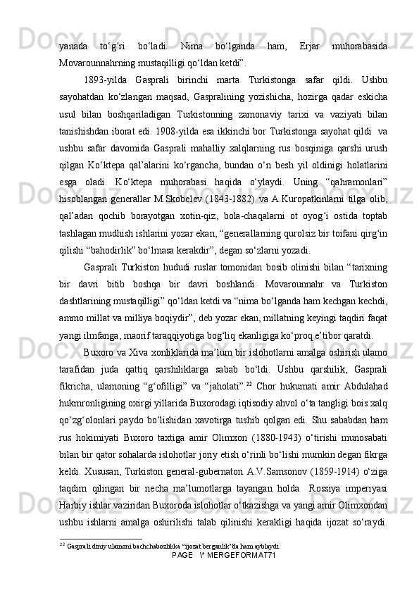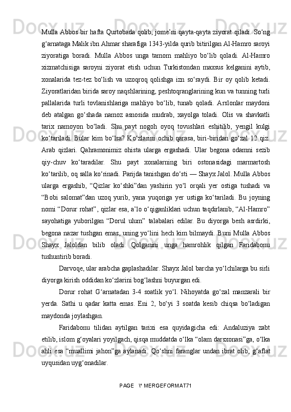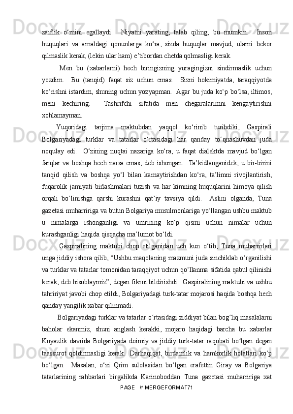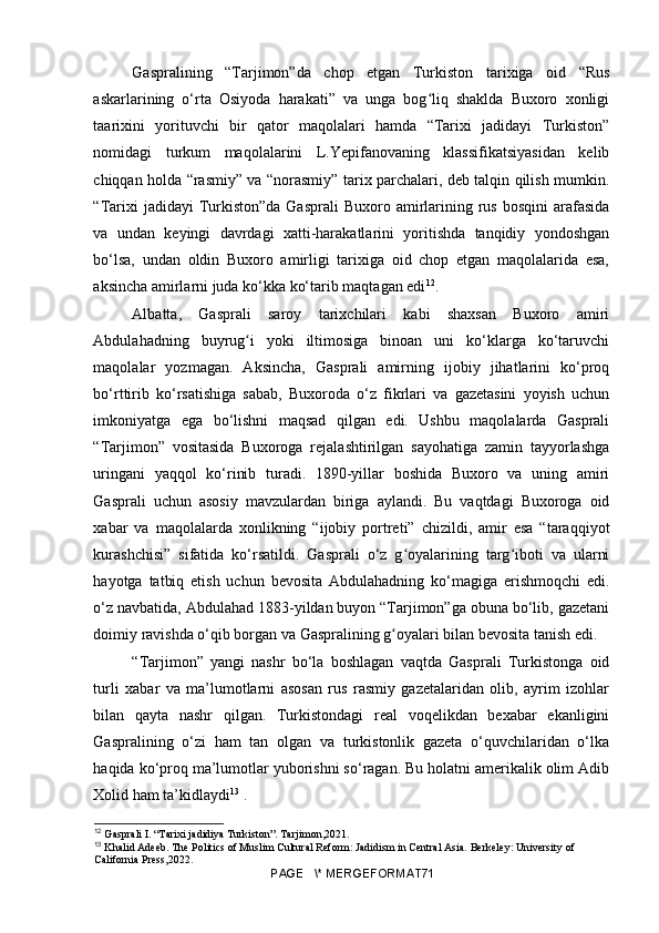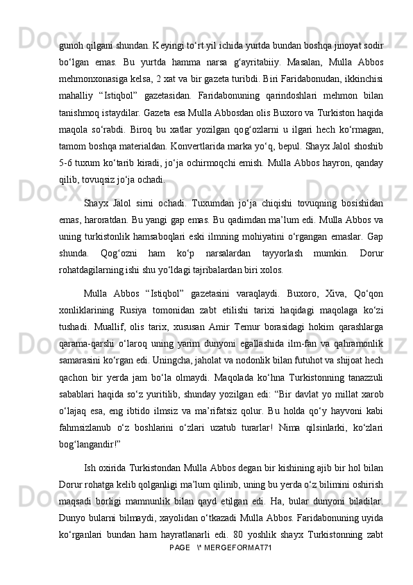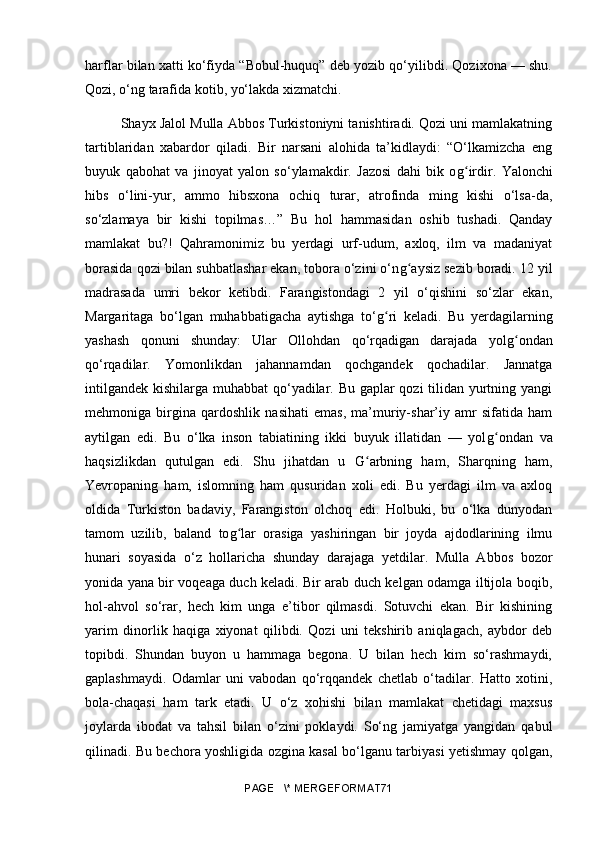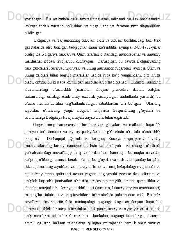 I. BOB. ISMOIL GASPRALINING HAYOTI, IJODI VA “DORUR ROHAT MUSULMONLARI” ASARIDA OBRAZLAR TIZIMINING AHAMIYATI………………………….…………………………………….….....6